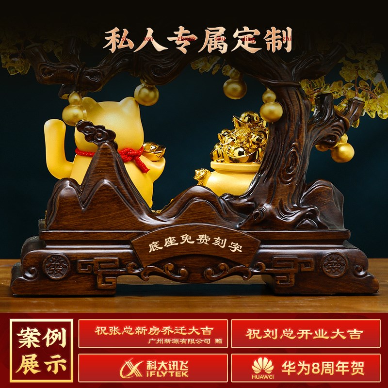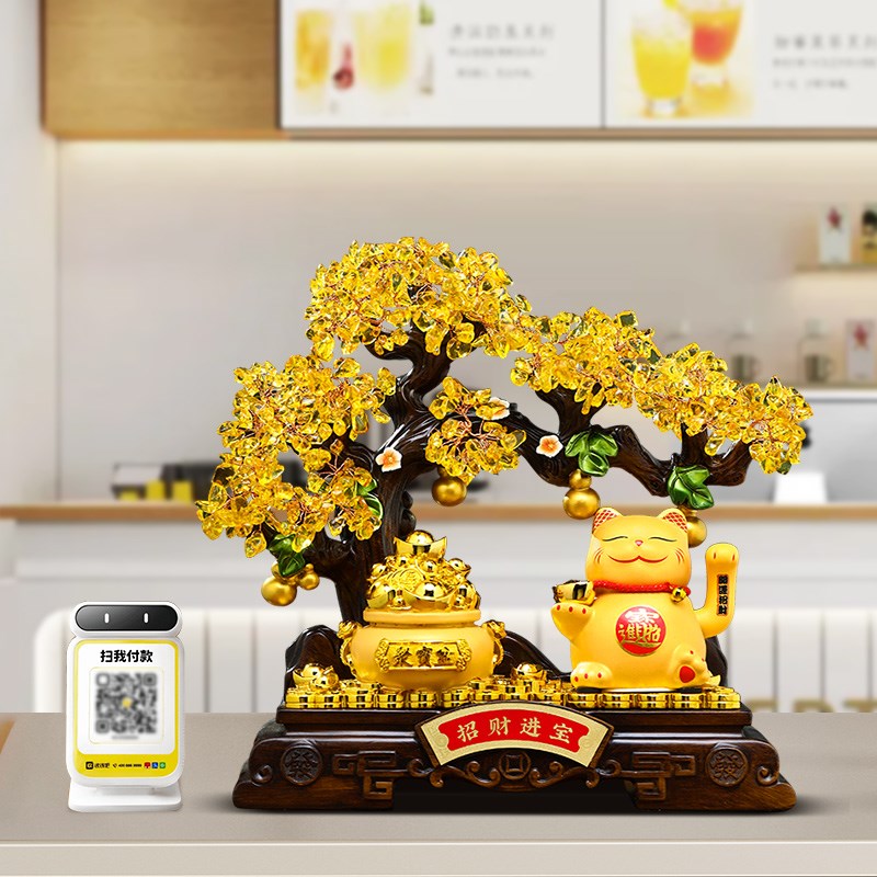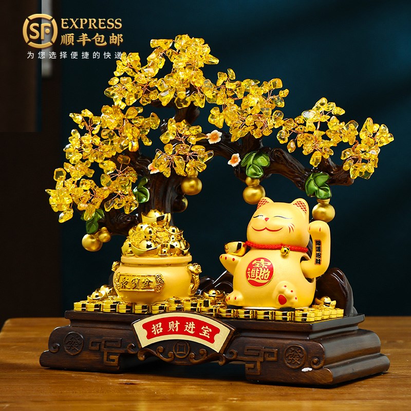发财树招财猫摆件店铺收银台前台办公室聚宝盆装饰品开业乔迁礼品