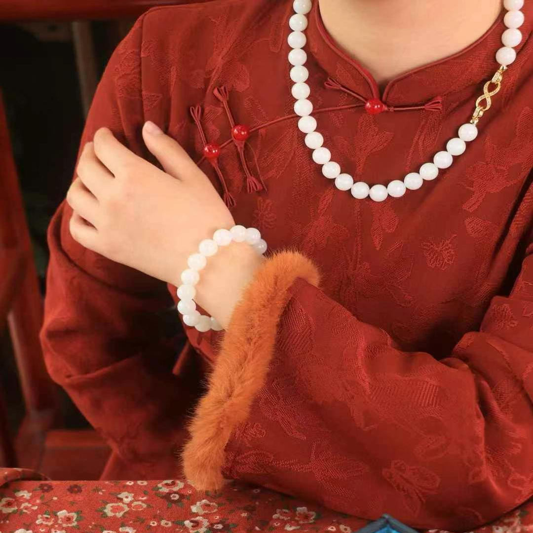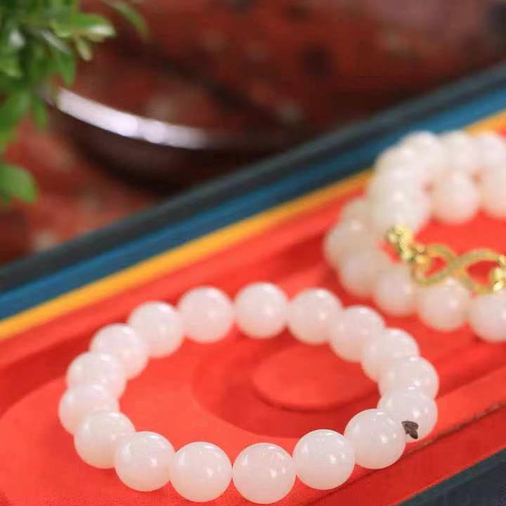 新疆和田玉手串天然羊脂级白玉男女款情侣款圆珠手链羊脂白玉