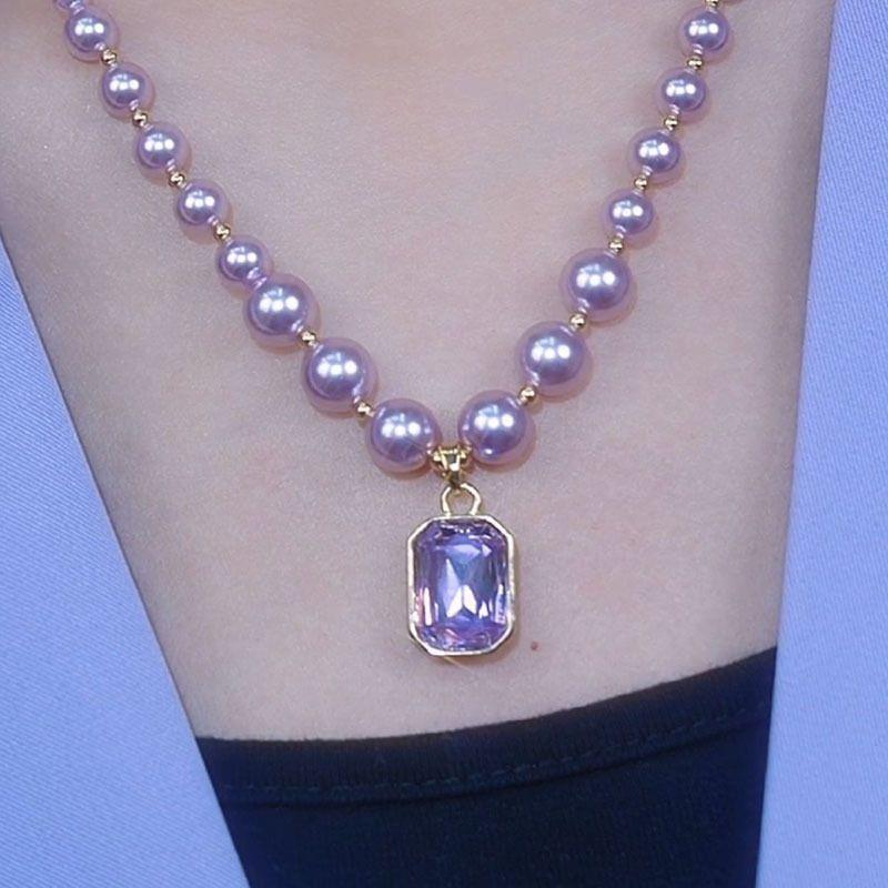 酷乖百货店轻奢紫色项链2025新款高级感水晶吊坠小众珍珠锁骨链女