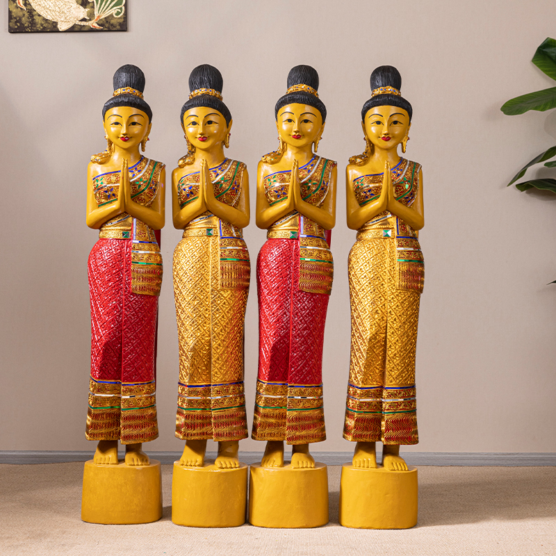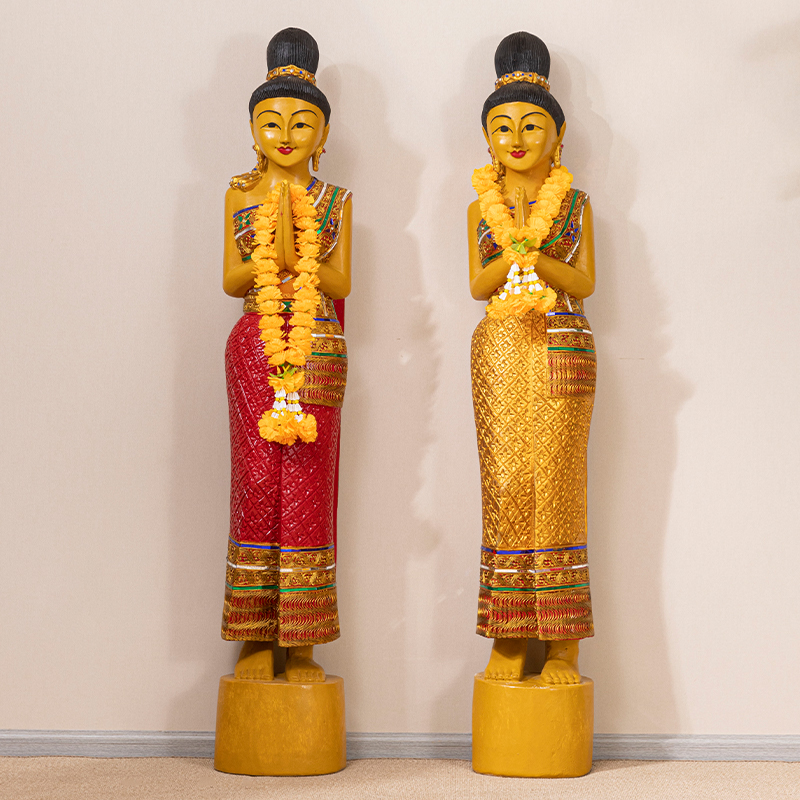 泰国迎宾门童东南亚风格木雕人偶泰式餐厅门口装饰品佛像落地摆件