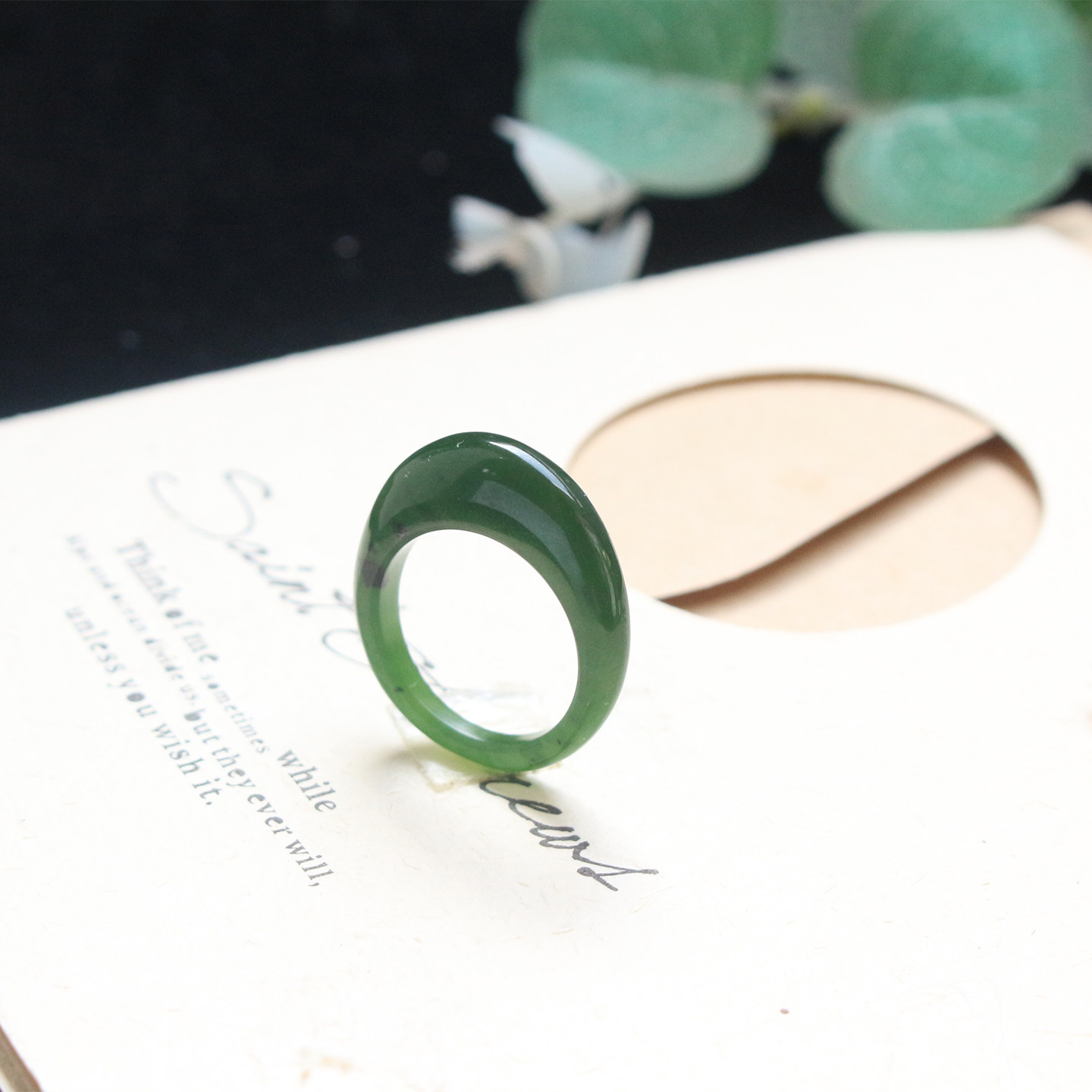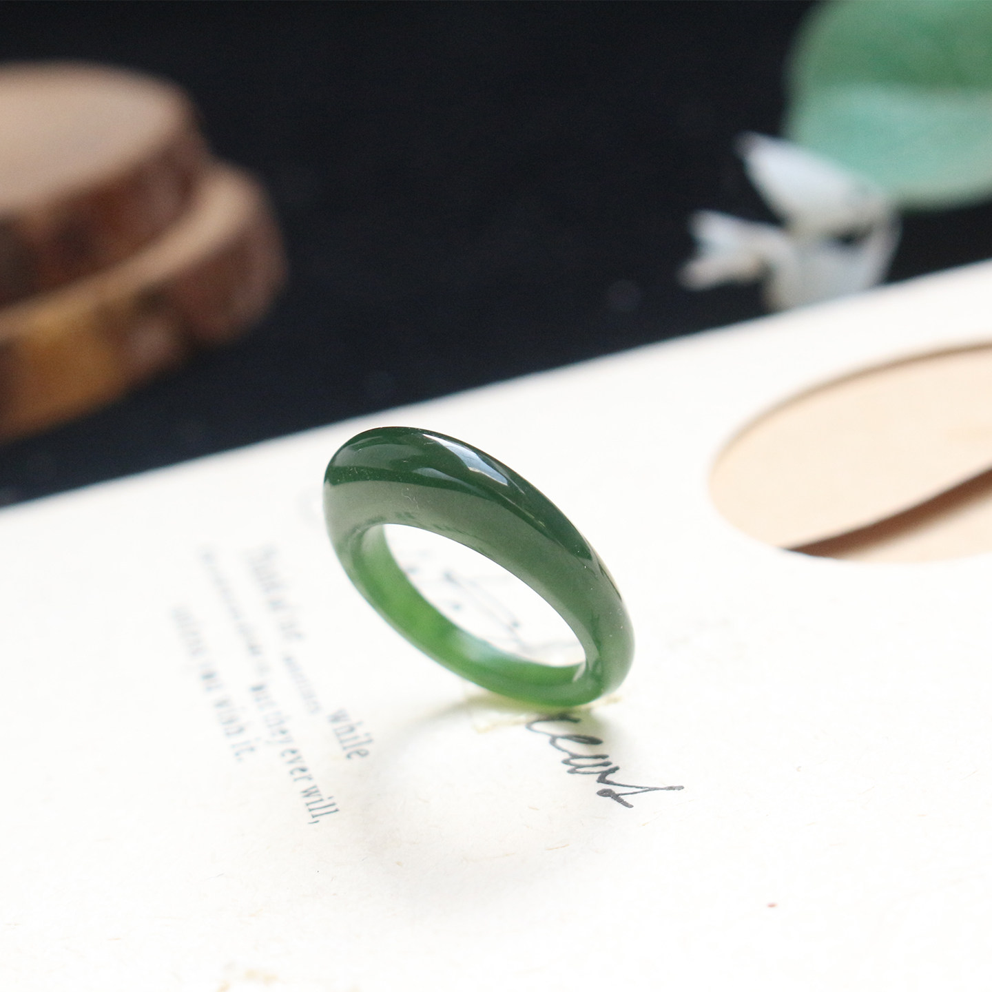 和田玉碧玉馒头戒指窄款老坑料菠菜绿水滴指环女士17mm单款特惠
