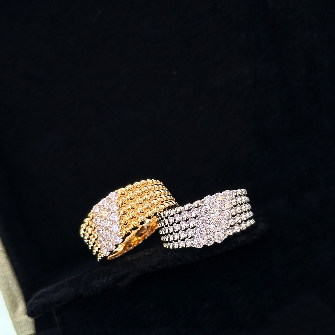 珠宝级五排钻金珠珠珠戒指女纯银镀金不掉色轻奢高级感手饰松弛感