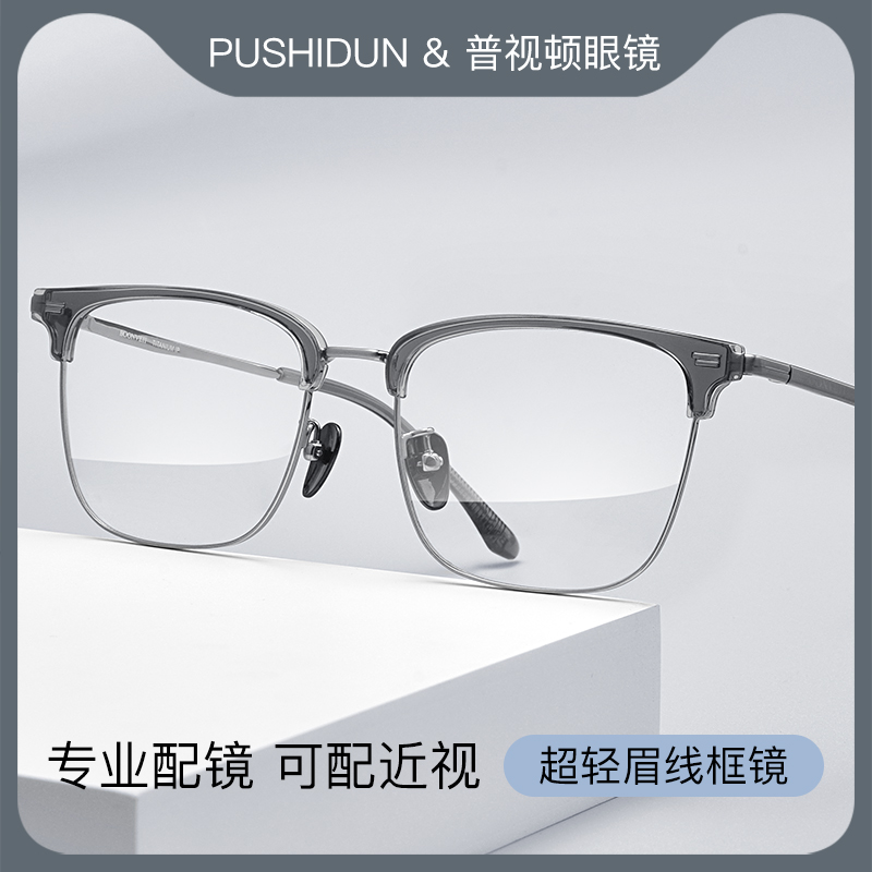 痞帅半框近视眼镜框男斯文高级感超轻纯钛可配度数变色防蓝光眼睛