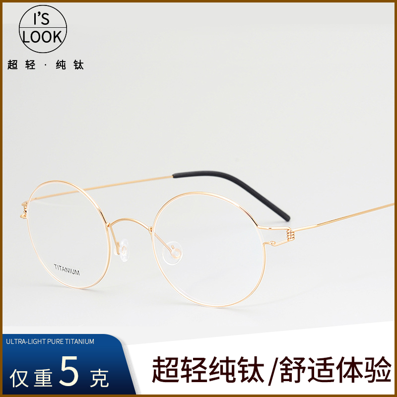 超轻纯钛无螺丝近视眼镜框架防蓝光辐射女复古圆方框配有度数男款