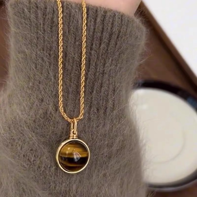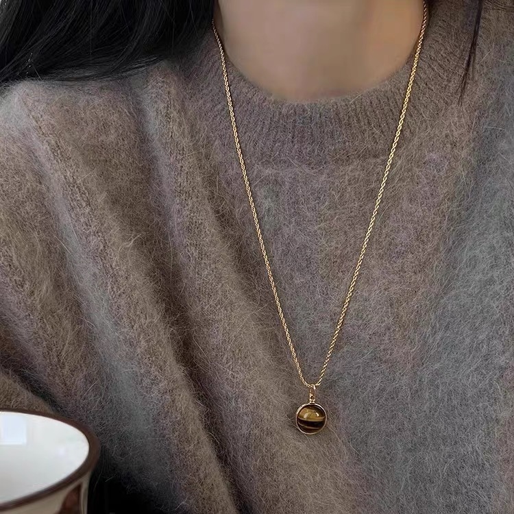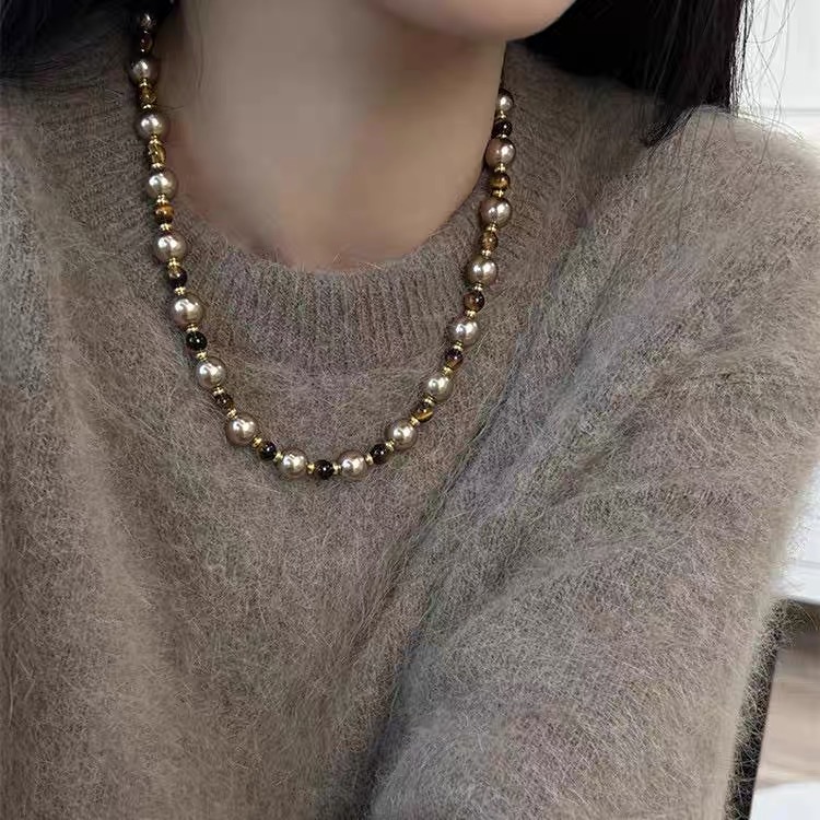 美拉德高级感虎眼石吊坠长款毛衣链轻奢小众珍珠项链复古秋冬轻奢