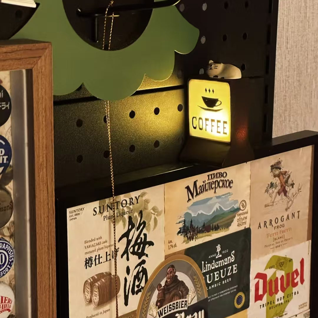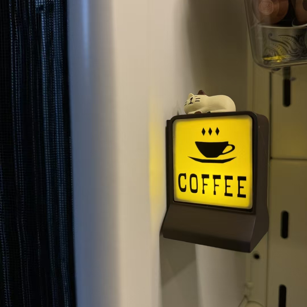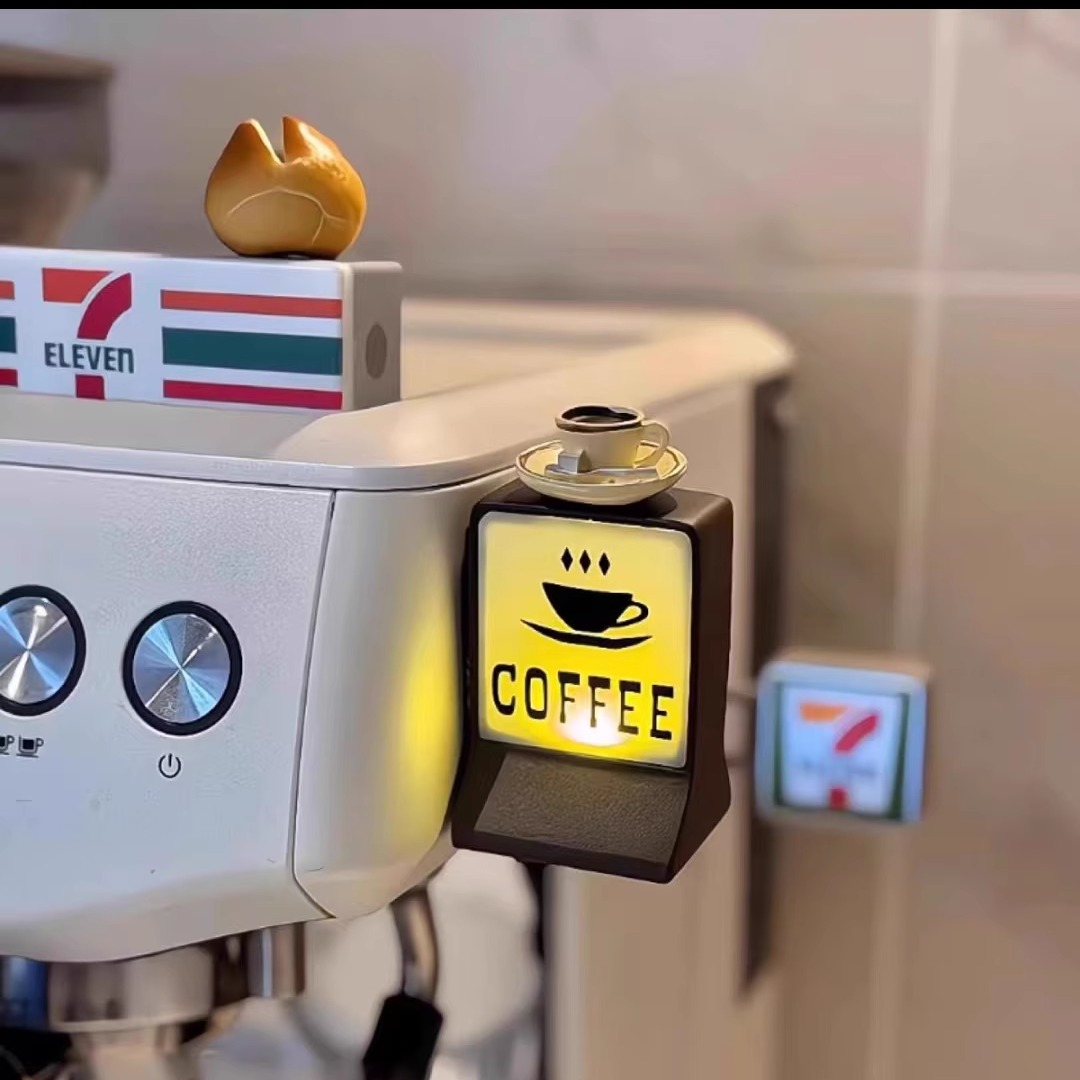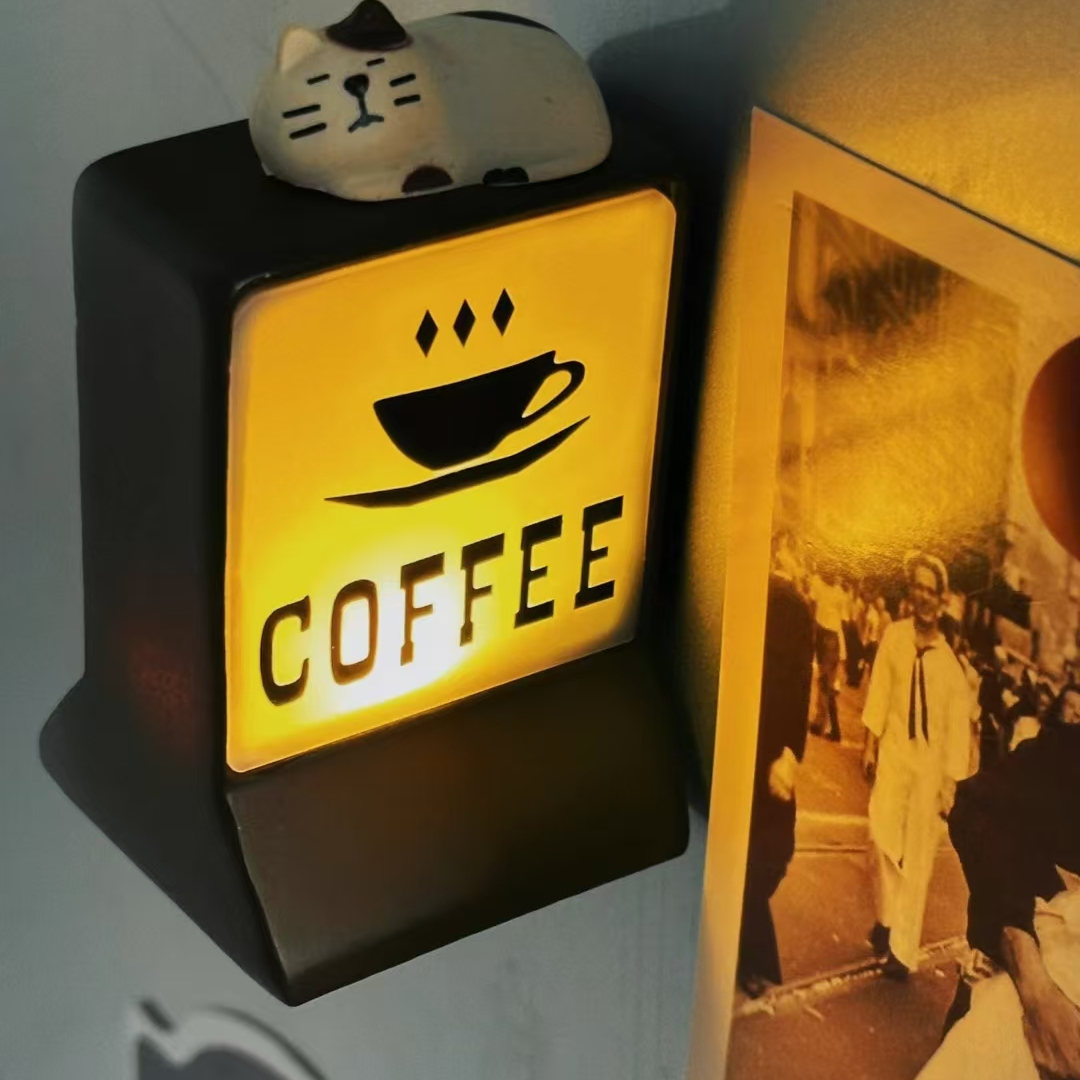 复古猫咪咖啡机装饰coffee小夜灯桌面摆件磁吸冰箱贴氛围感礼物