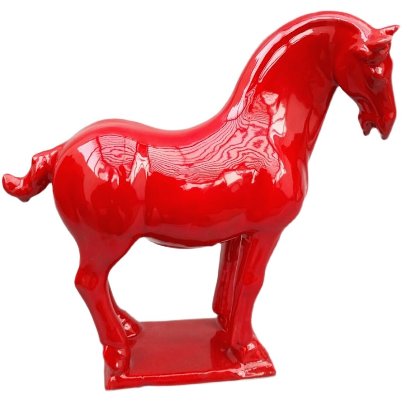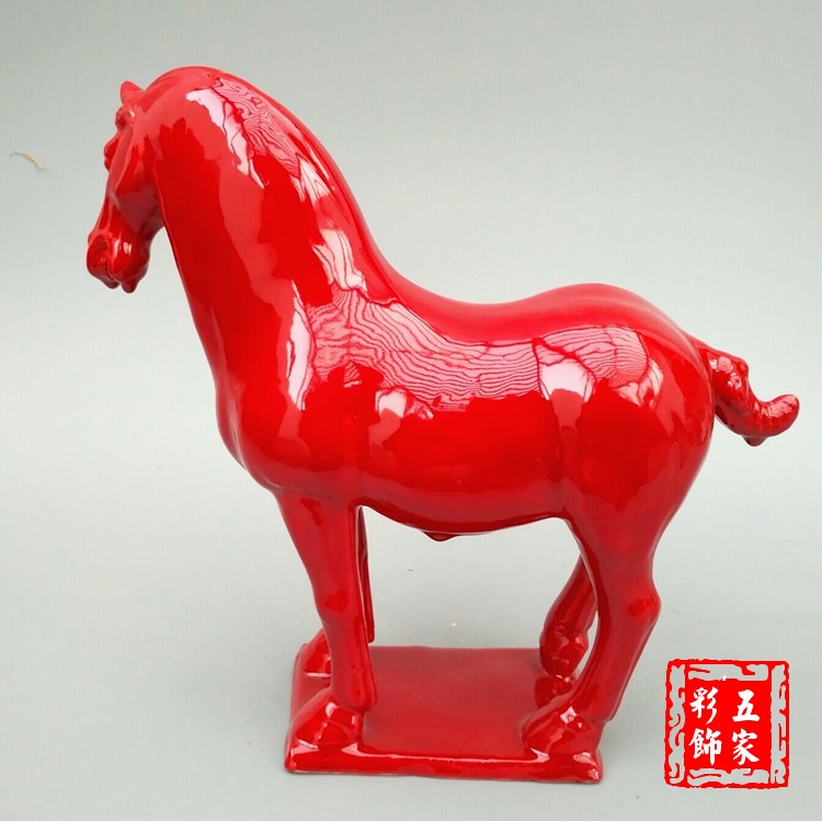 中国红陶瓷马摆件 家居饰品 陶瓷工艺品 宾馆酒店装饰 玄关电视柜