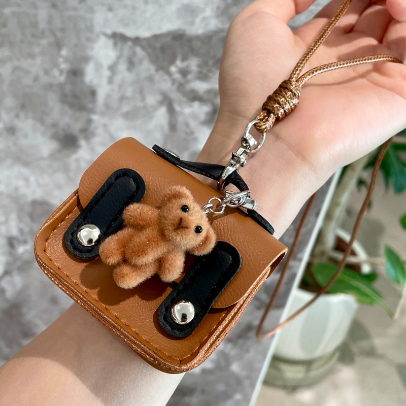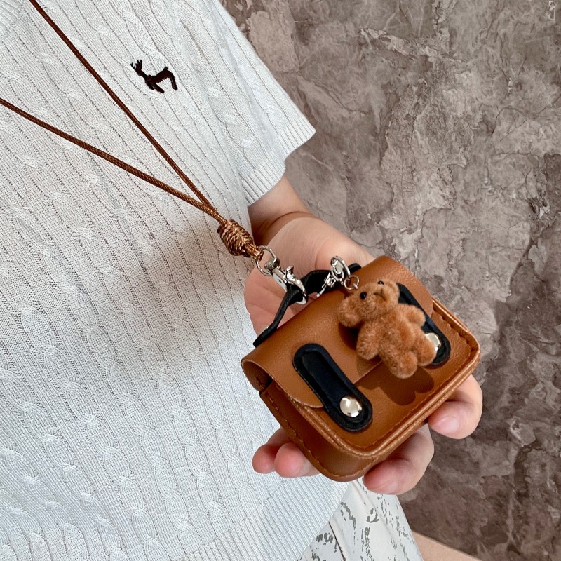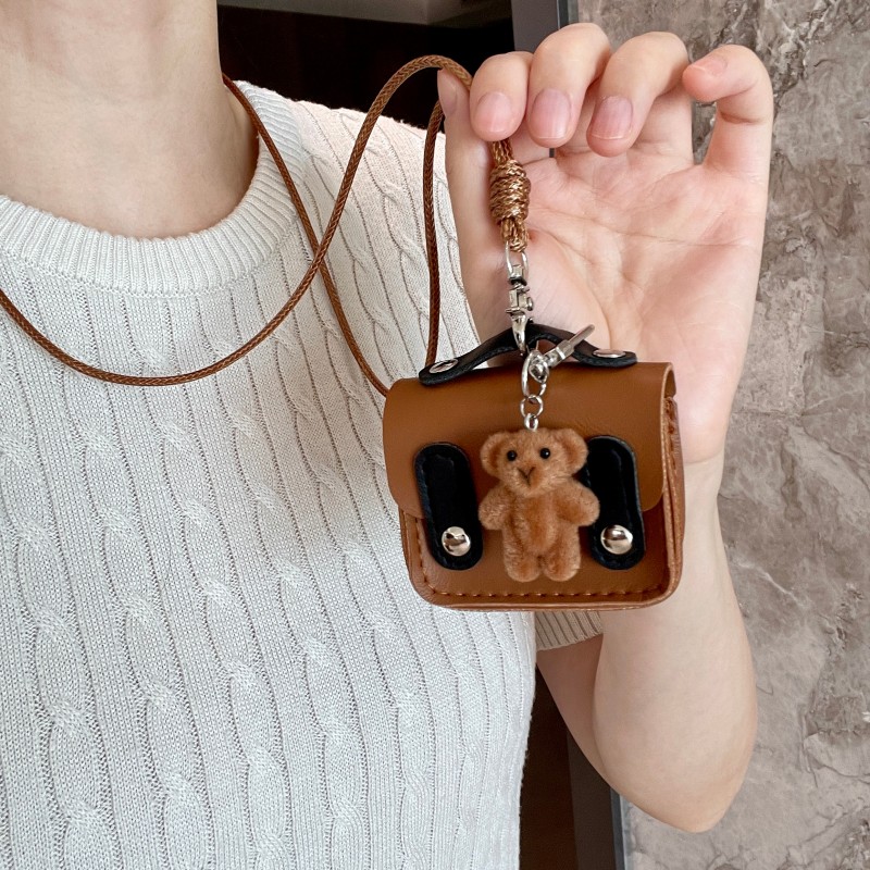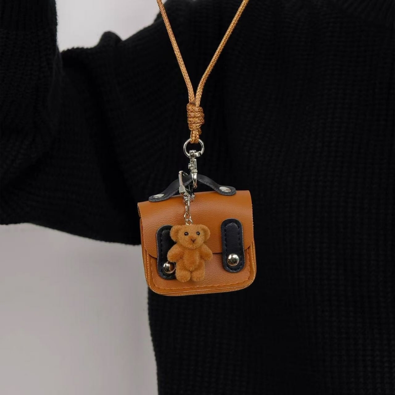 耳机包美拉德皮质小熊包包挂件项链编织绳耳机套收纳包长款毛衣链