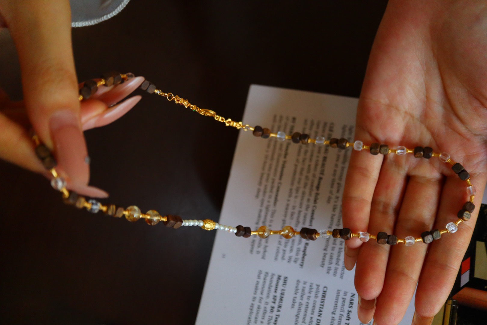 天然珍珠+白水晶方糖+沉香黄塔晶手链项链两用 可做三圈手链s925