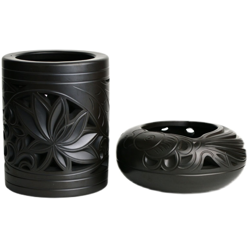 黑陶套装礼盒镂空笔筒陶瓷桌面摆件商务礼品定制创意高档摆设领导