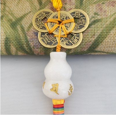风水五帝钱挂件明咒白玉葫芦卸 门冲宝聚气