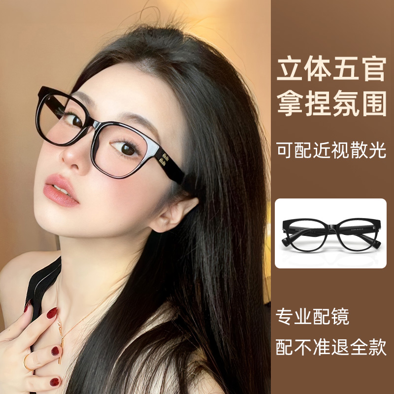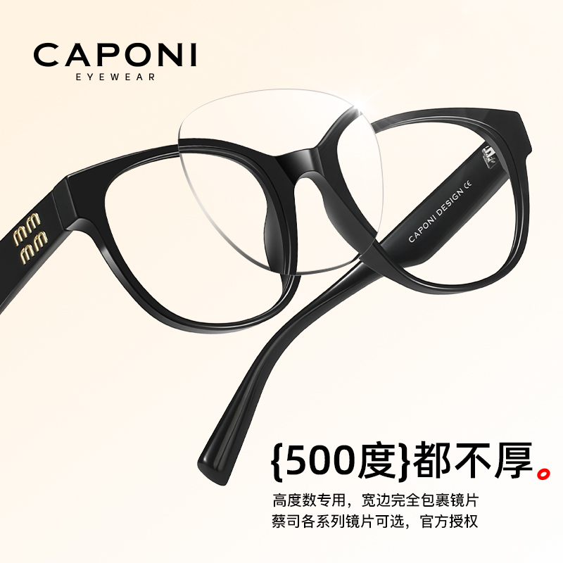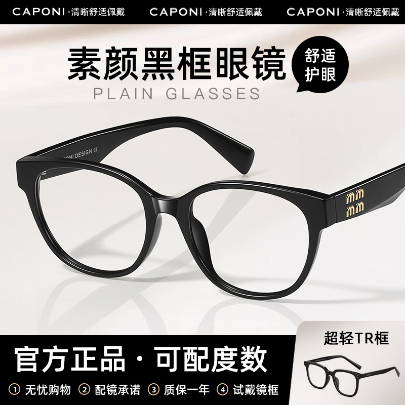 CAPONI黑框眼镜显白素颜镜框女方圆脸近视度数可配防蓝光 34205