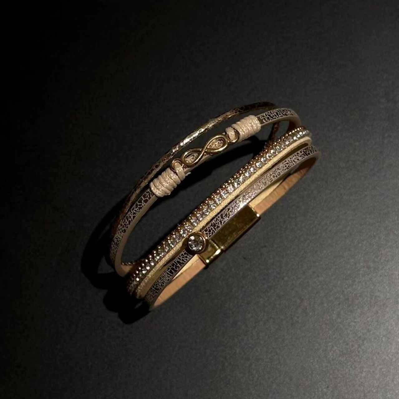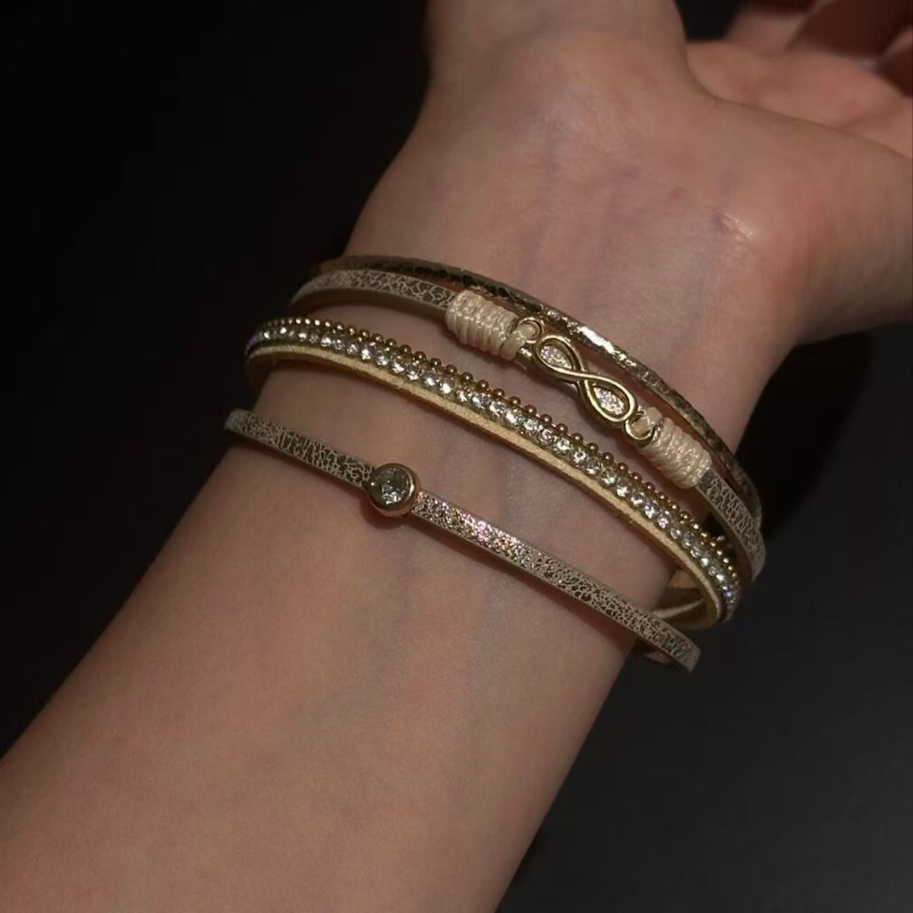 「biu boom」波西米亚风多层排钻手环vintage 中古设计感叠戴手饰