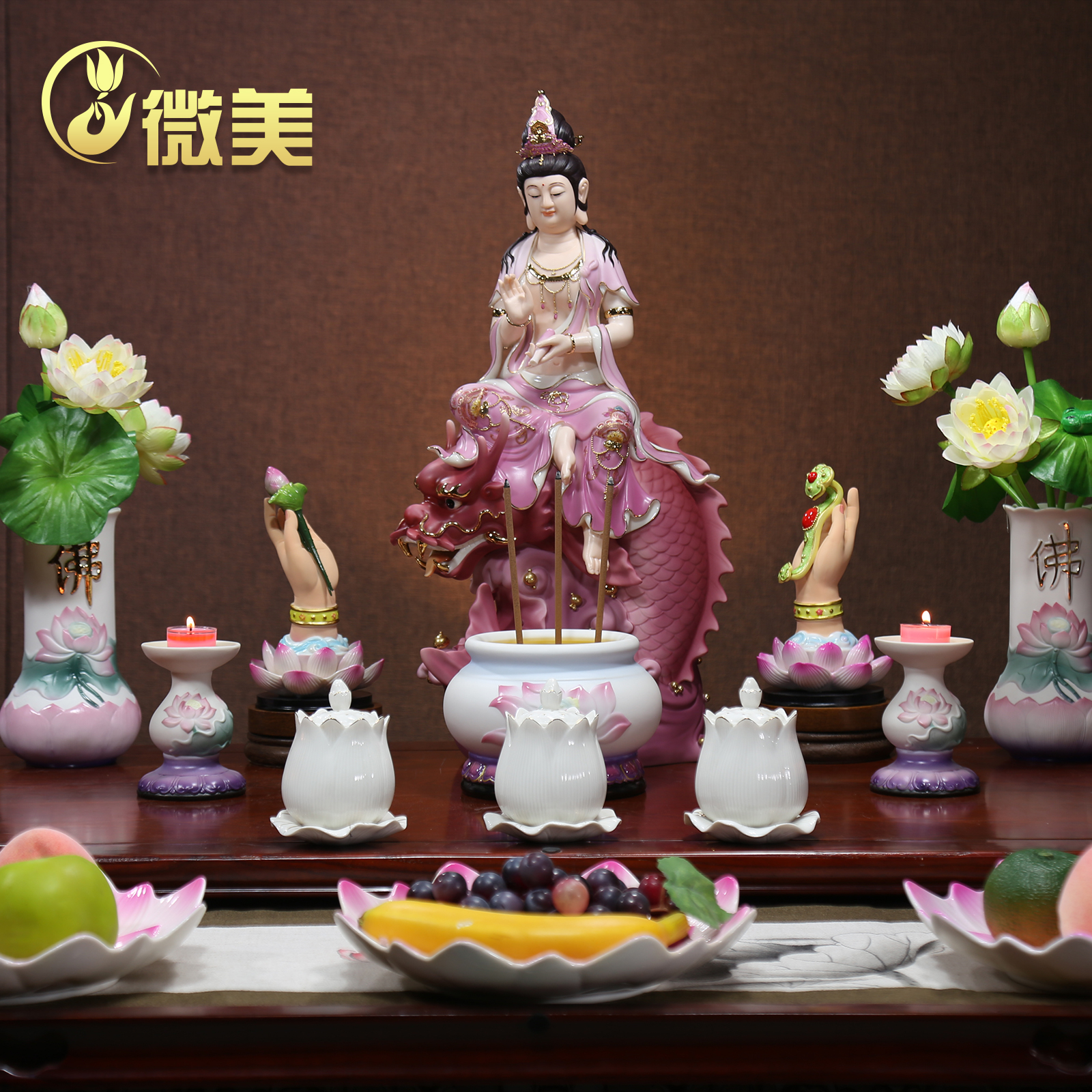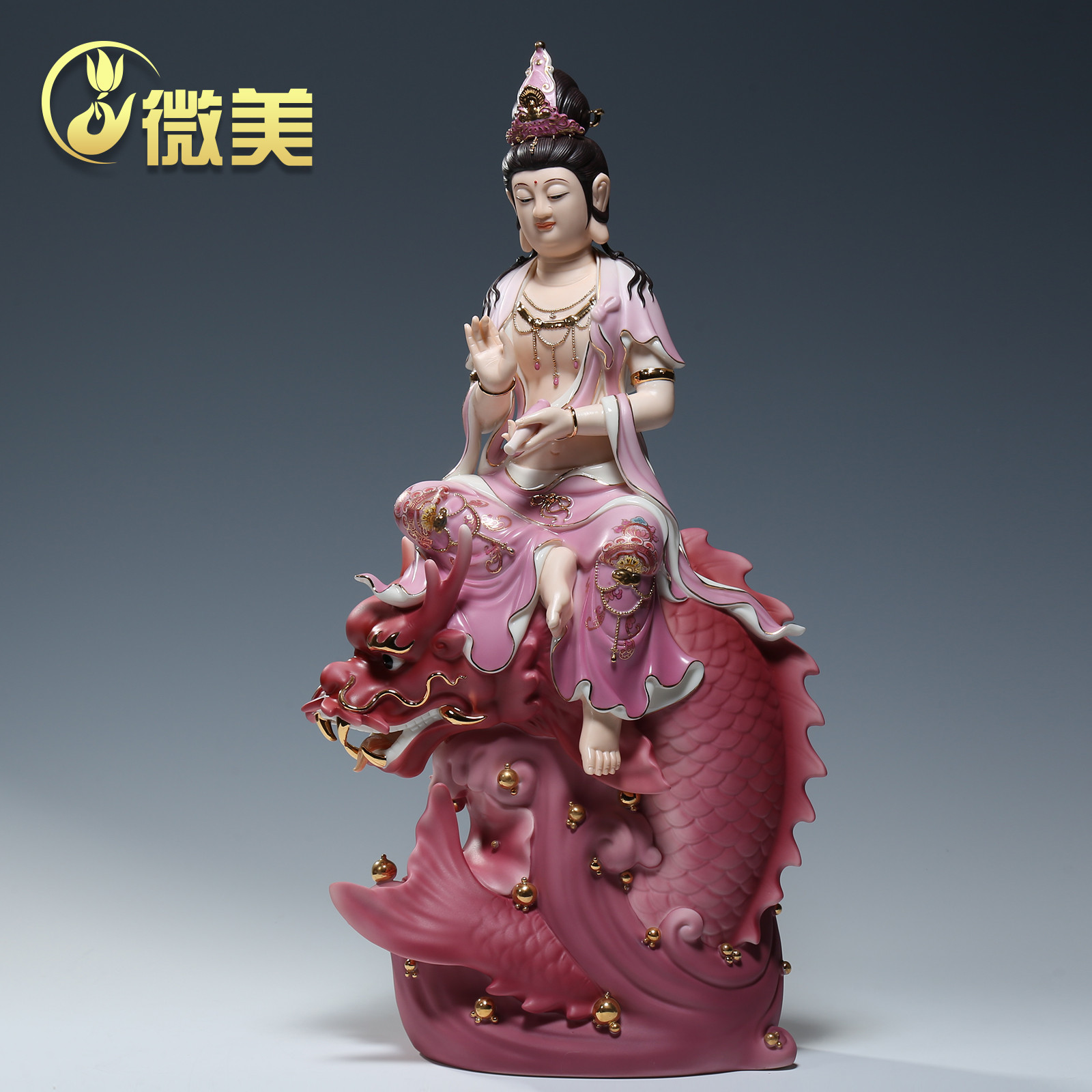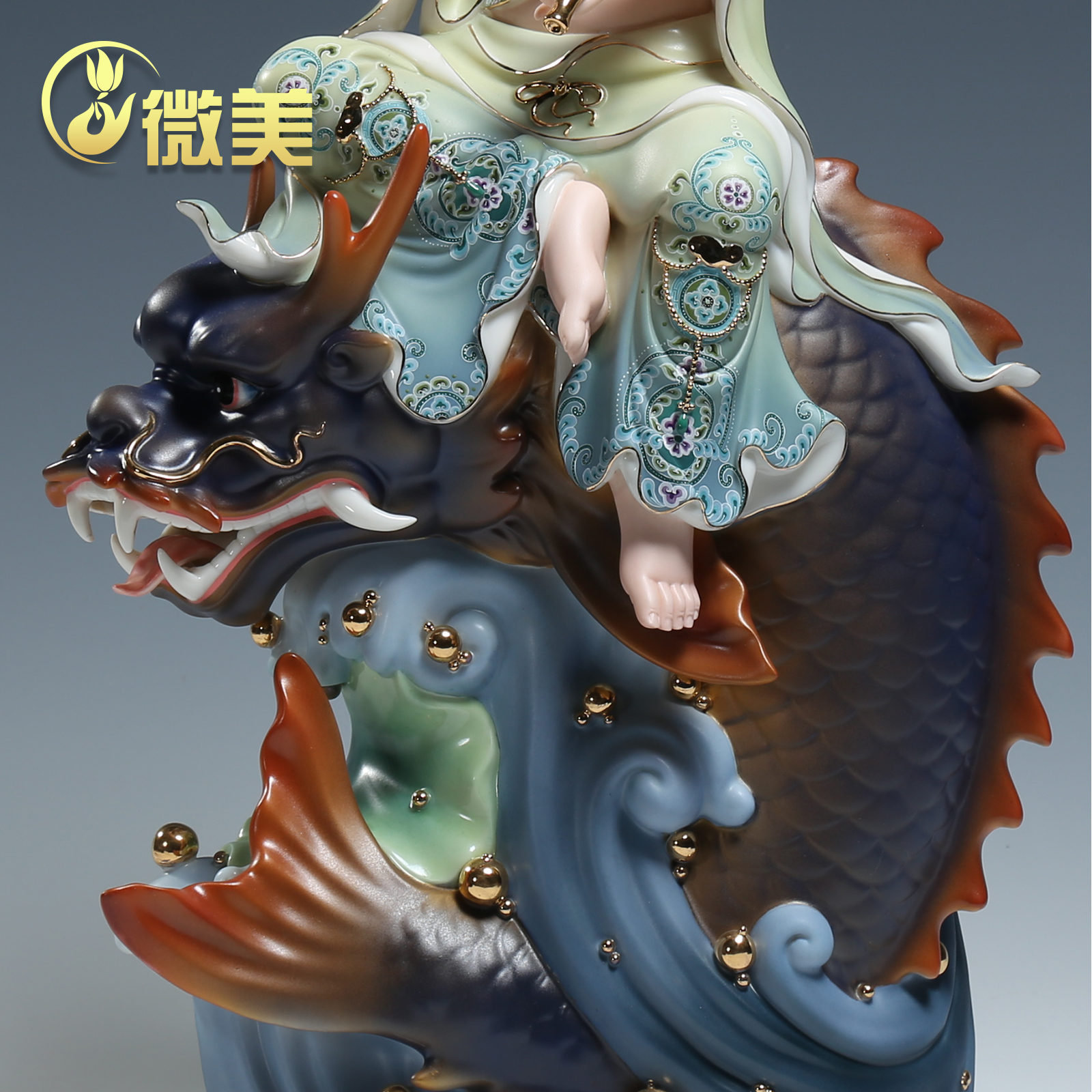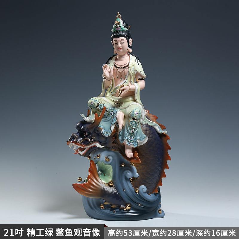 微美21寸鳌鱼观音坐像佛像供奉观世音菩萨家用佛堂陶瓷摆件