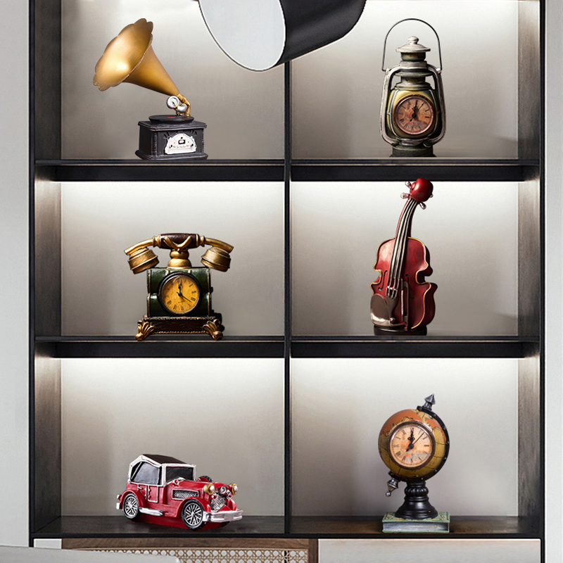 创意复古地球仪时钟桌面摆件酒柜书架轻奢摆设客厅书房家居装饰品