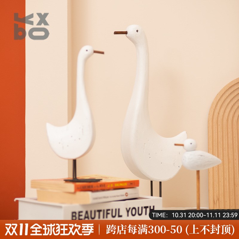 YBOX实木白色海鸟/大鹅家居装饰摆件萌萌哒桌面家庭趣味饰品
