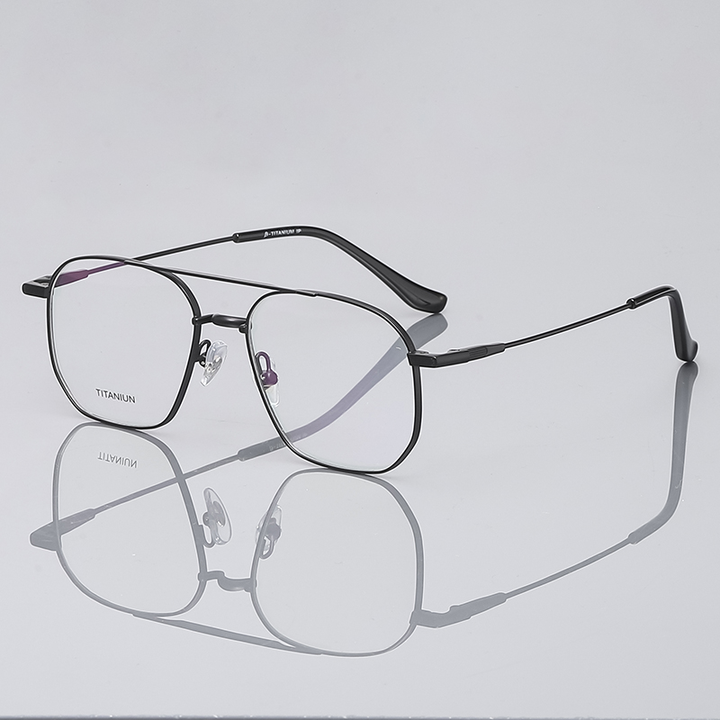 超轻纯钛双梁方形飞行员蛤蟆镜潮男 时尚简约设计配近视平光镜