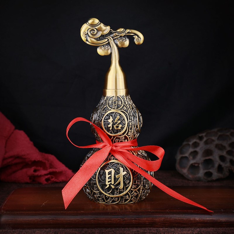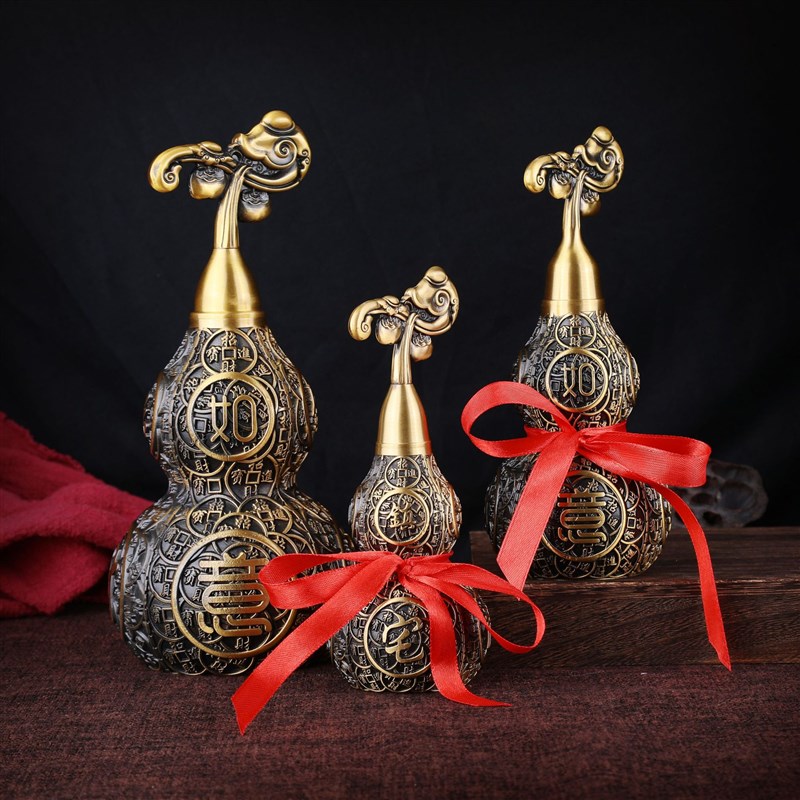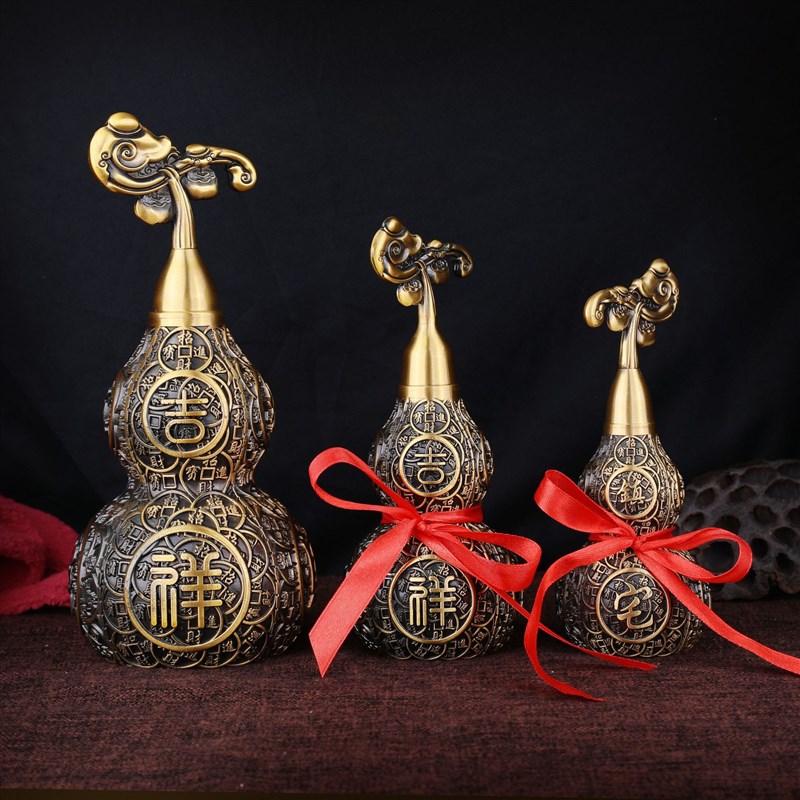黄铜大葫芦金钱风水小葫芦镇平安驱开口宅过光邪家用开业庆典摆件