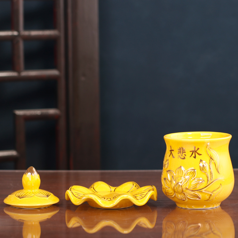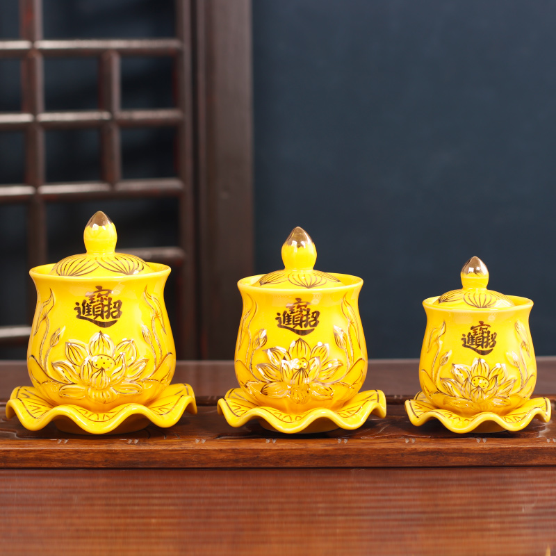 陶瓷供水杯供佛家用莲花大悲水仙字观音供杯贡杯净水杯圣水杯佛前