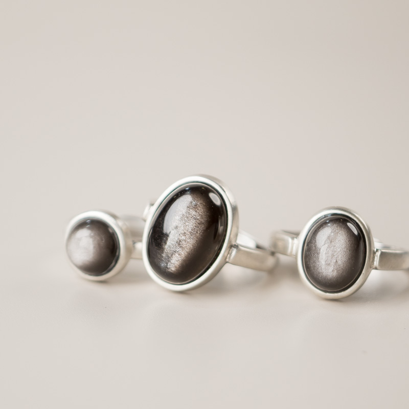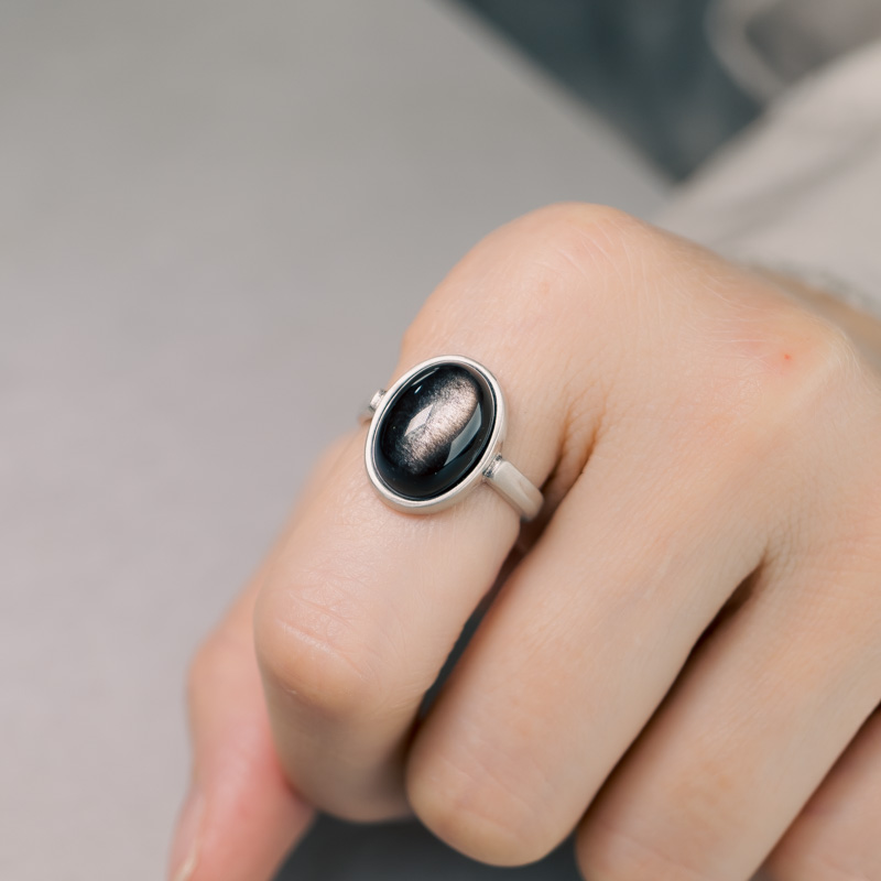 非鱼之家原创银曜石磨砂925银戒指男 简约设计活口食指戒指环女款