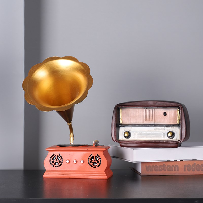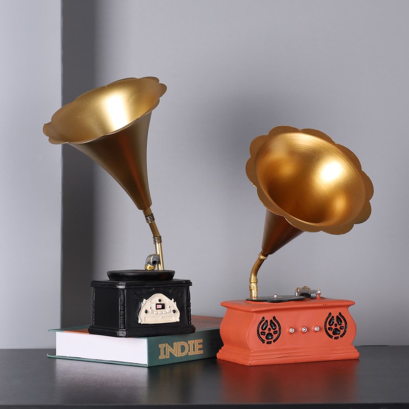 欧式复古留声机咖啡店摆件书柜z酒柜装饰品轻奢高档书架桌面小摆