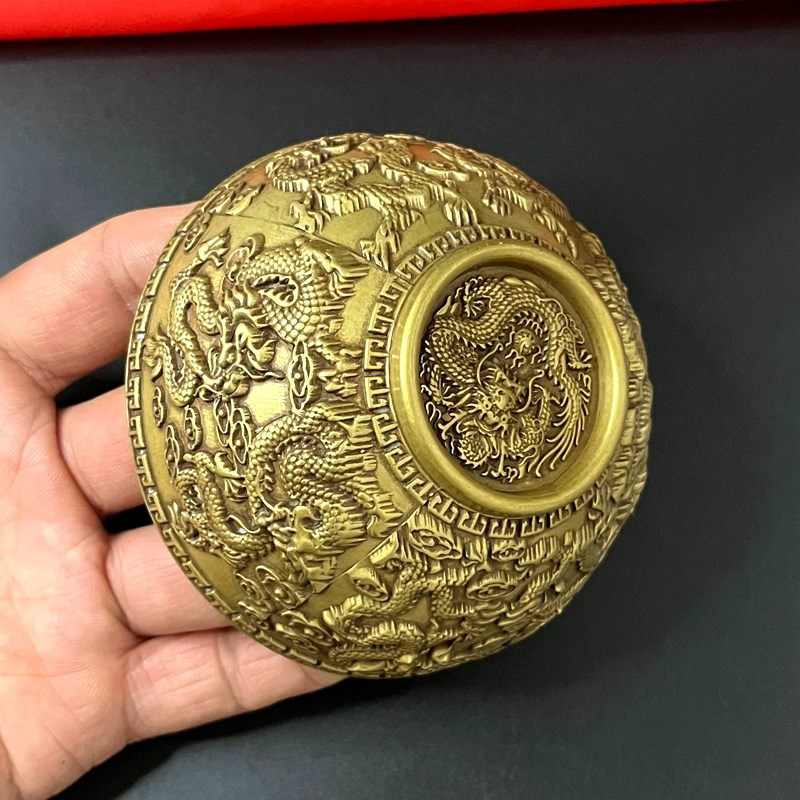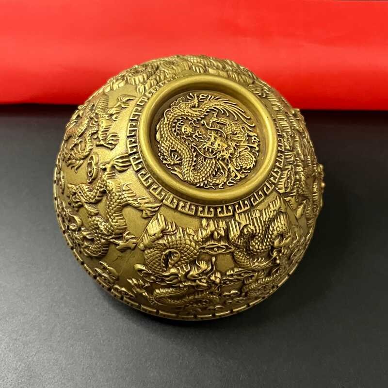 纯铜九龙浮雕龙年圣水杯供水杯净水杯供水碗家居摆件开业乔迁装饰