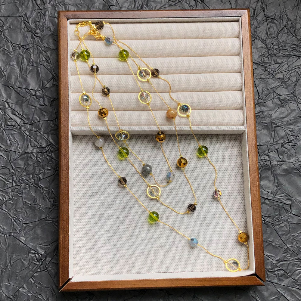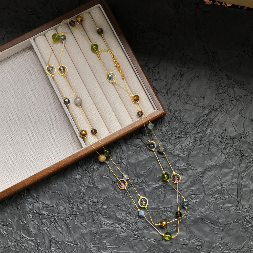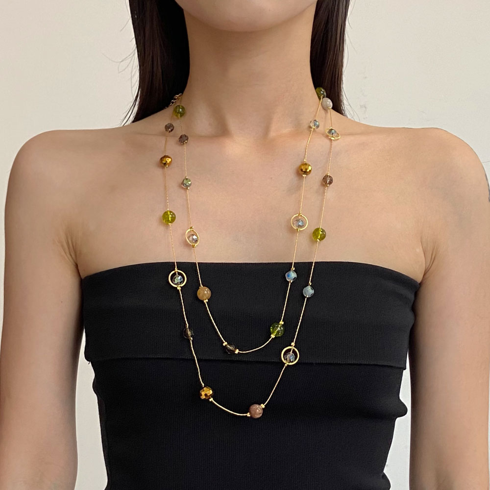 复古轻奢水晶串珠叠戴多巴胺项链女法式炫彩风铃长款多层锁骨链潮