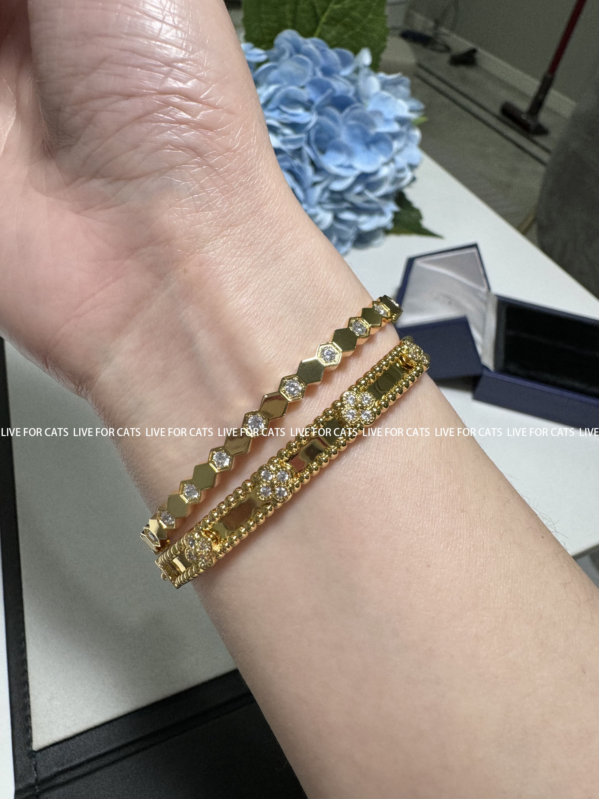 V金CNC工艺 蜂巢手镯女半钻蜂窝波浪手环镀18K玫瑰金叠戴