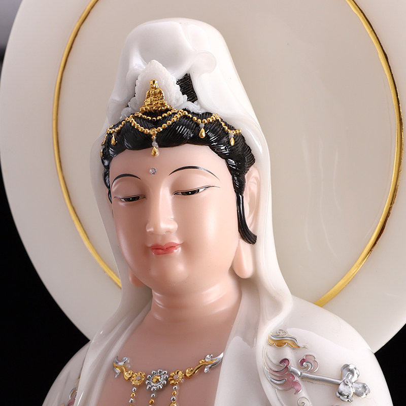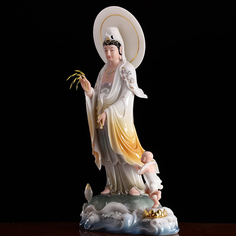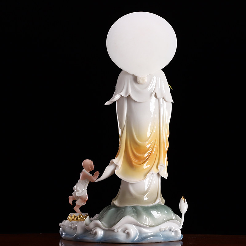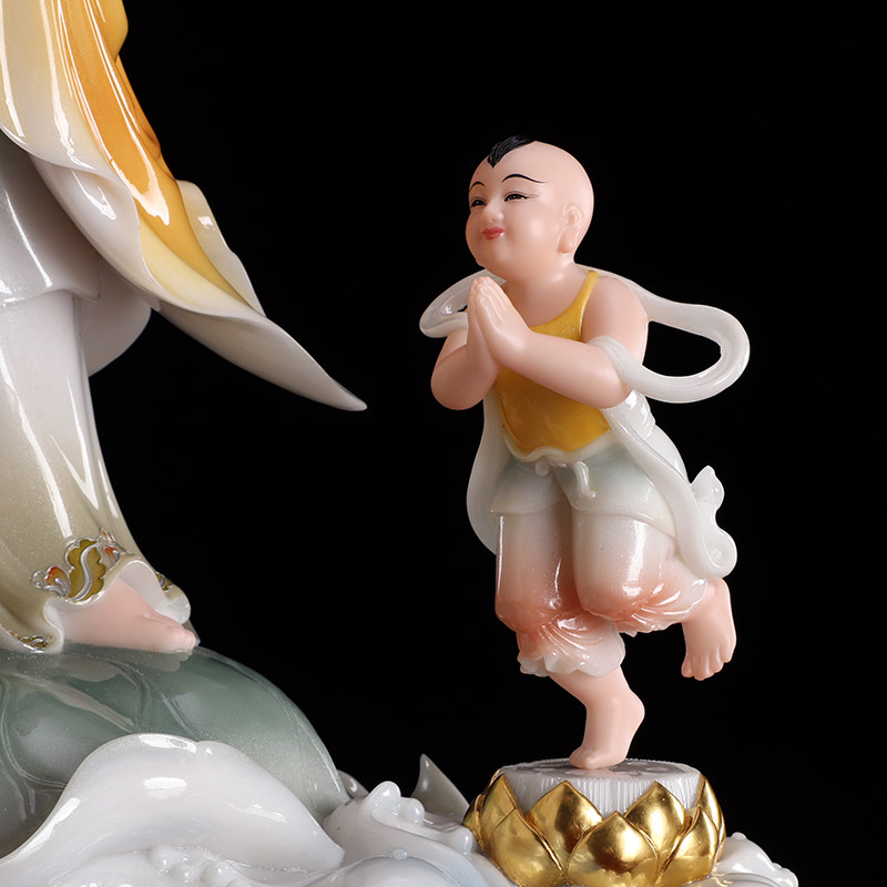 圆通佛具汉白玉送子观音佛像供奉家用童子拜观音菩萨神像求子摆件