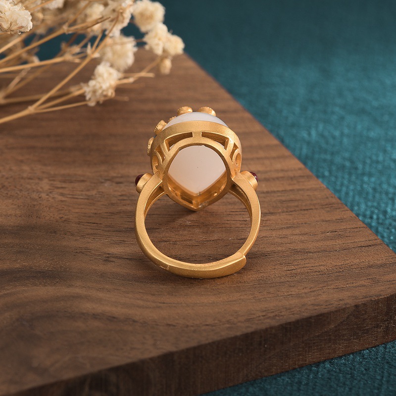 2025夏季新品中国风古装汉服气质女生搭配手饰仿和田玉南红戒指女