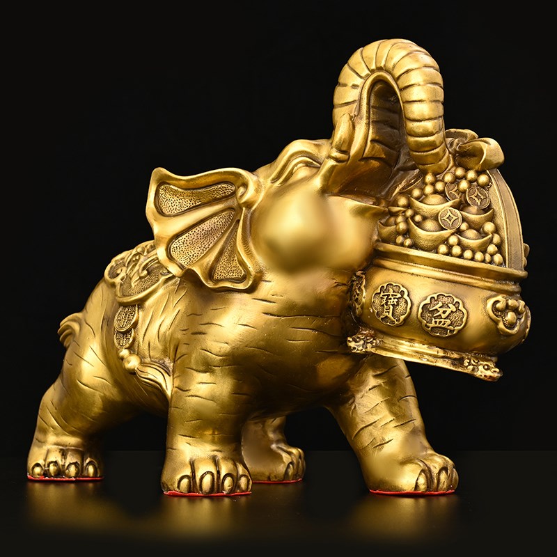 纯铜大象摆件g聚宝盆对象福禄象家用办公室收银台桌面大号装饰铜