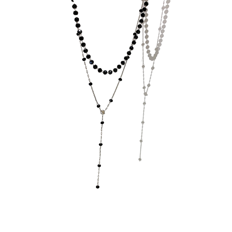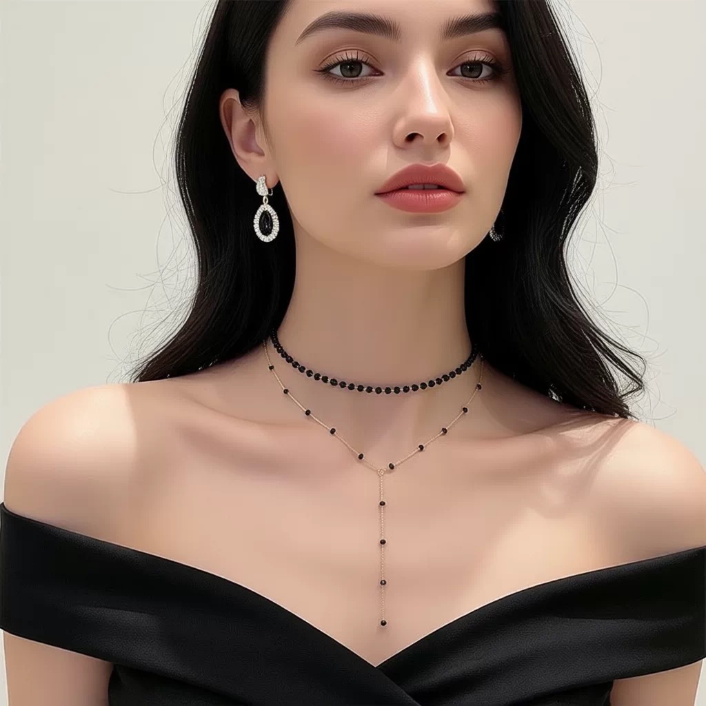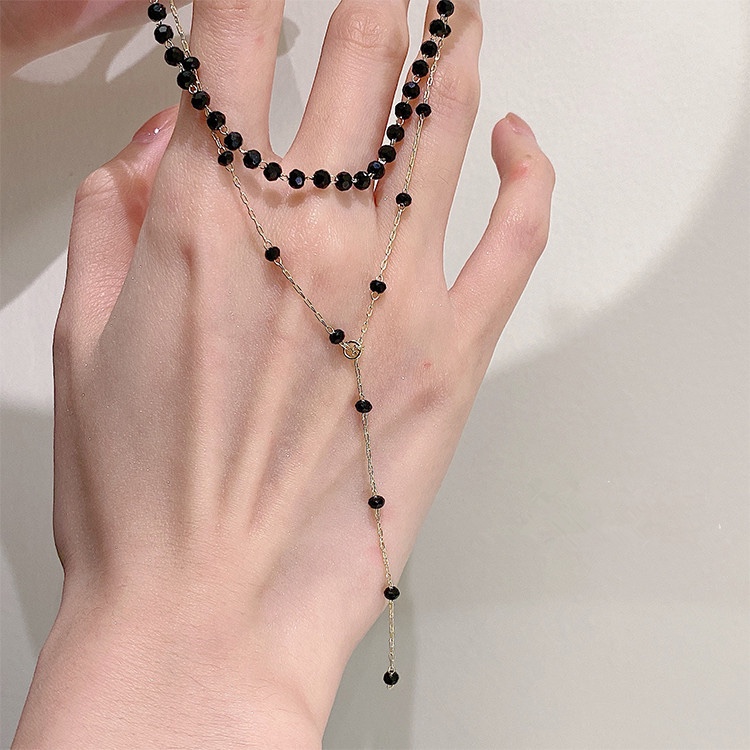 黑绳项链双层脖颈链锁骨链水晶chocker项圈女颈带简约小众冷淡风