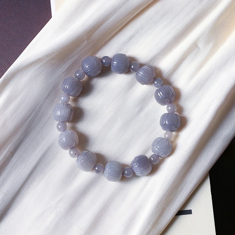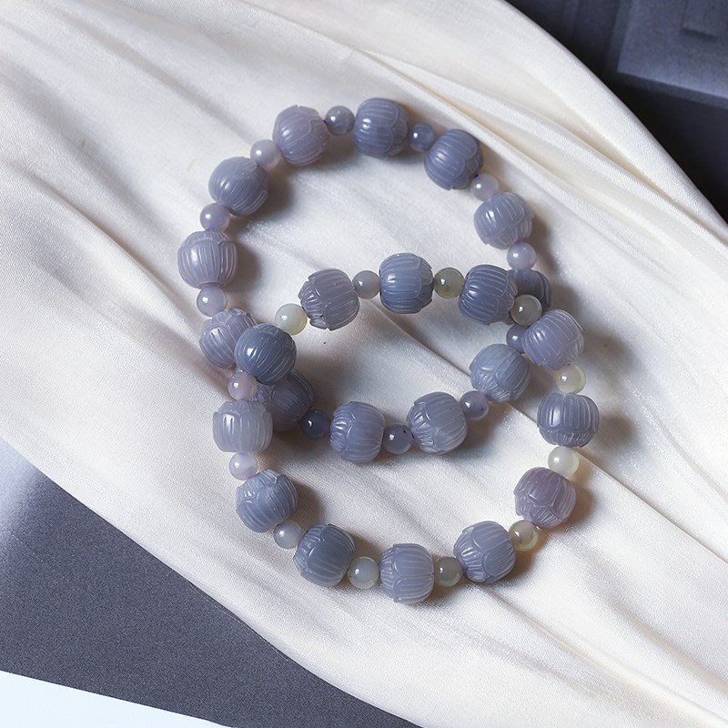极速精品 天然和田玉老料烟紫紫罗兰莲花珠款P手链 女款玉石饰品