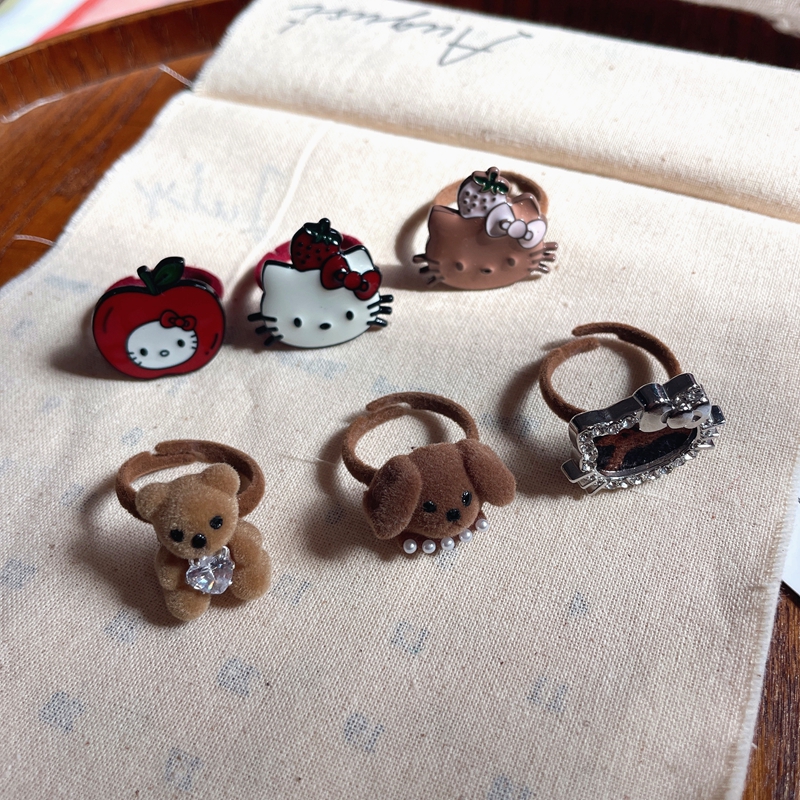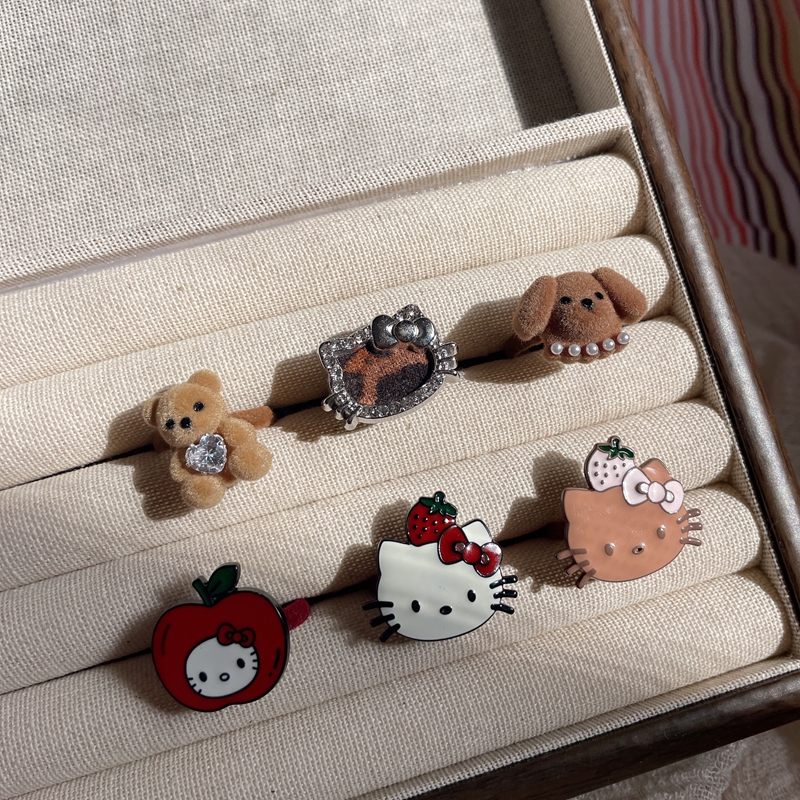 2025秋冬新款原创手作可爱kity猫戒指女童趣可爱植绒秋冬戒指