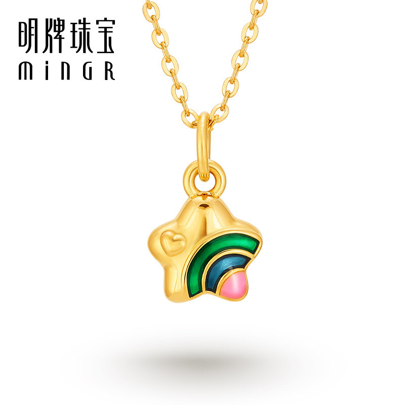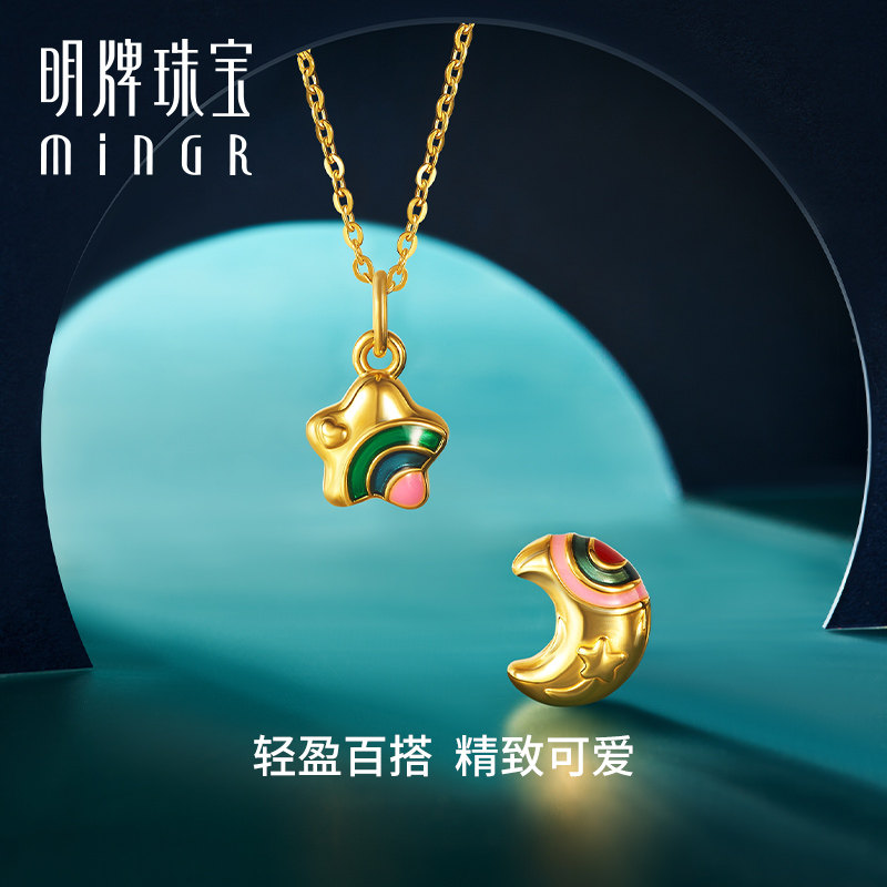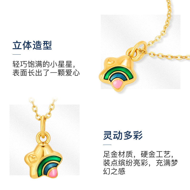 明牌珠宝硬金宝梦星吊坠t黄金Q萌小星星项坠足金转运珠女ASY0495