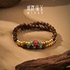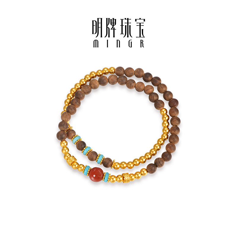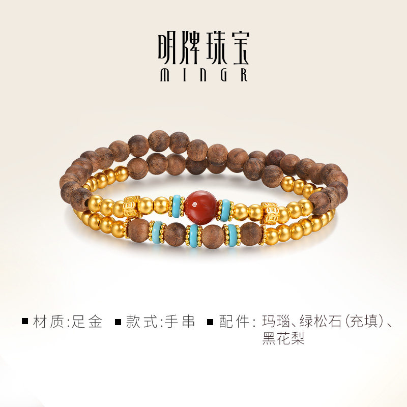 明牌珠宝古法黄金木珠手串 多宝系列足金镶嵌玛瑙金珠手链AFK0424