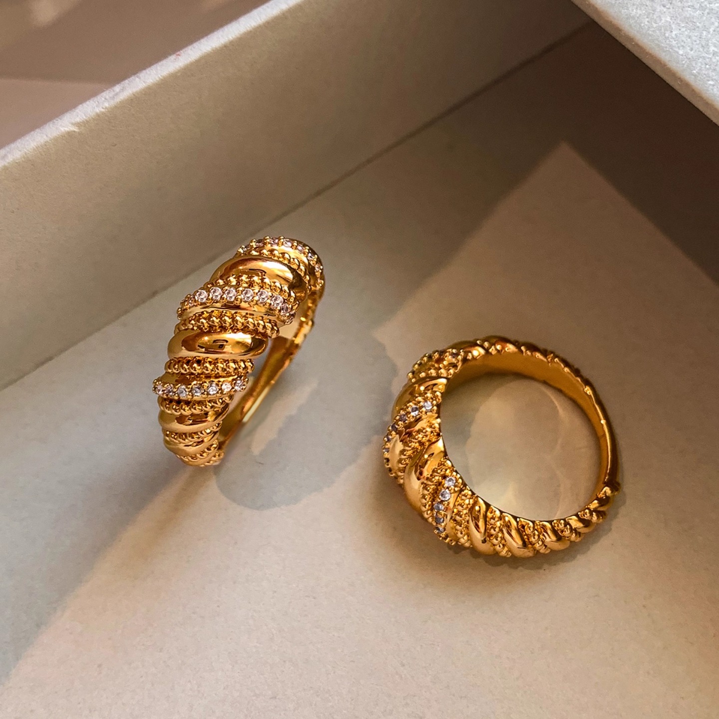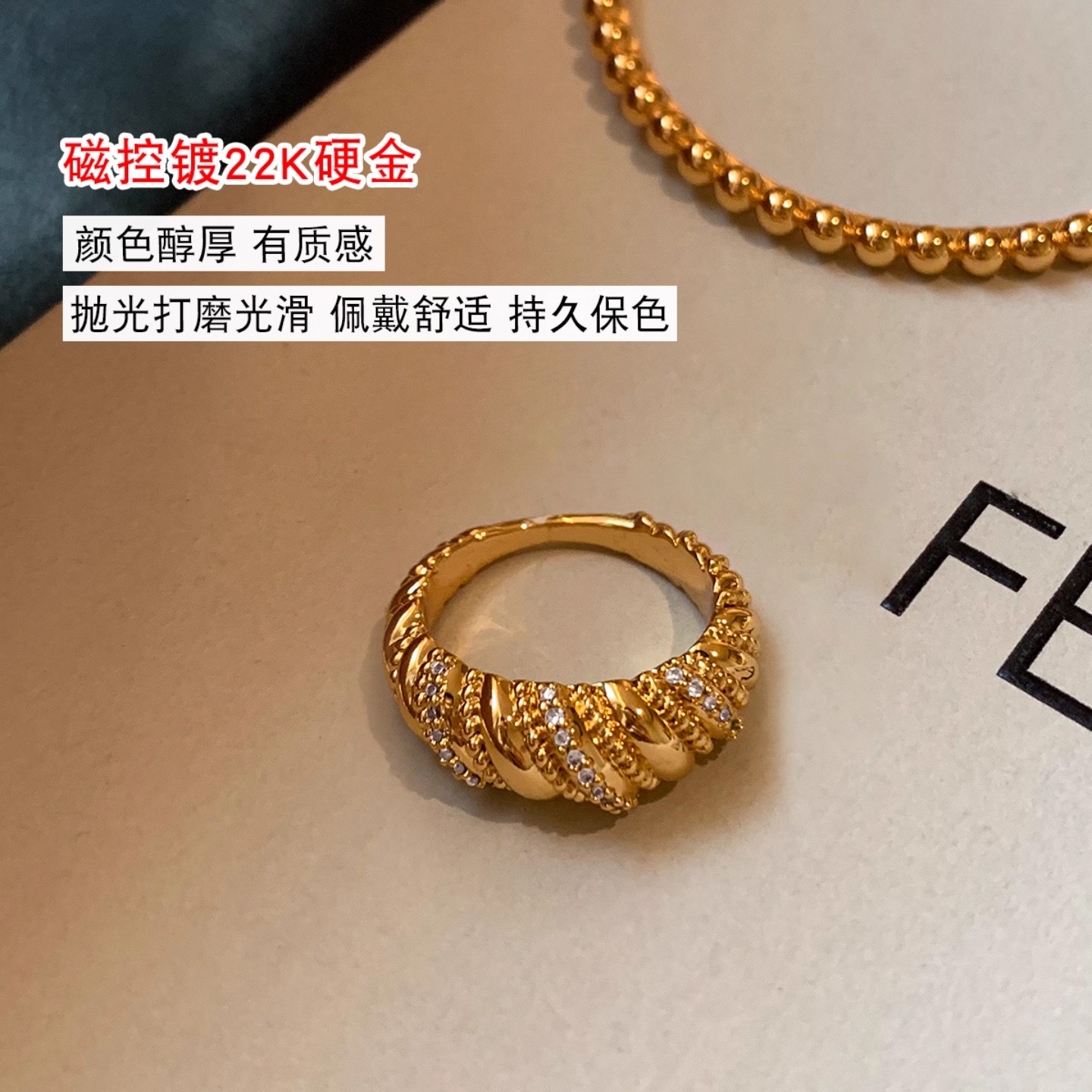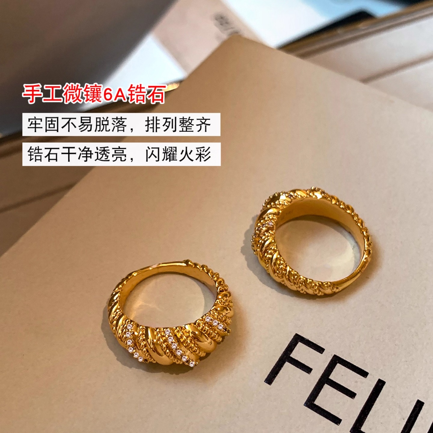 韩国金属羊角镶钻食指戒指女时尚个性麻花新款轻奢小众高级感饰品