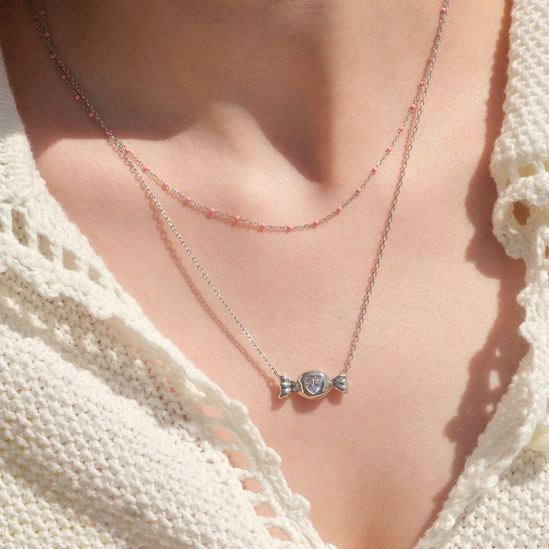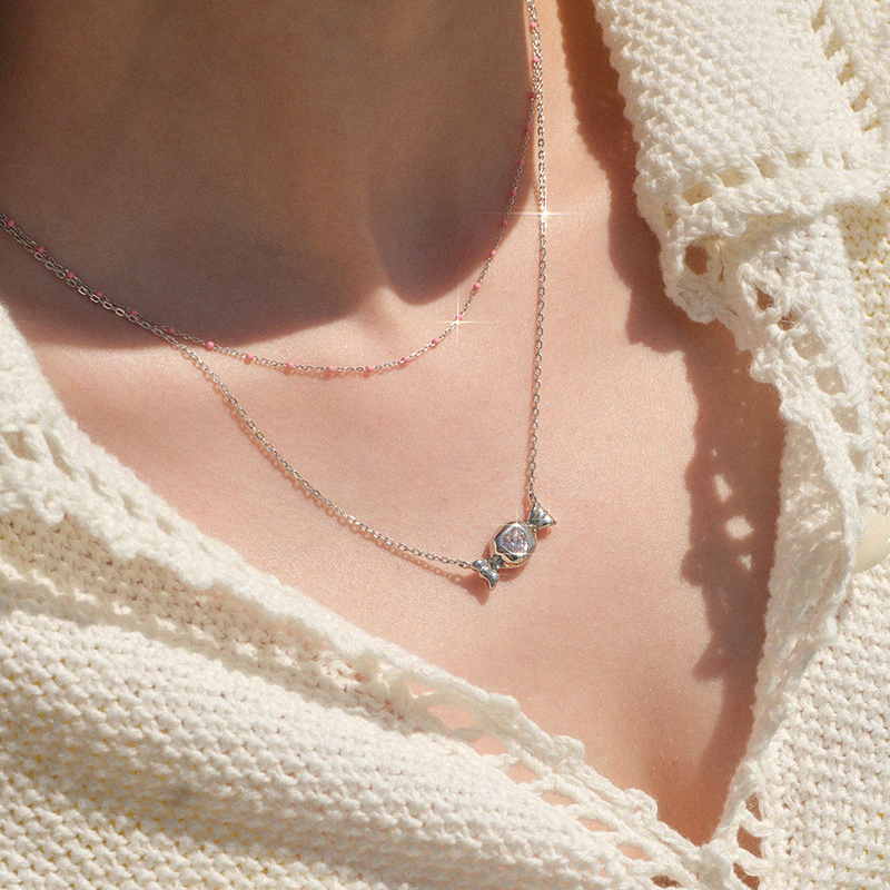 LLab s925银制原创糖果爱心高闪粉色锆石项链