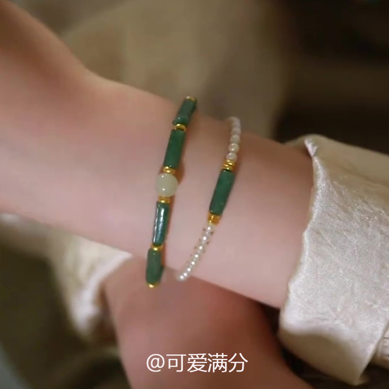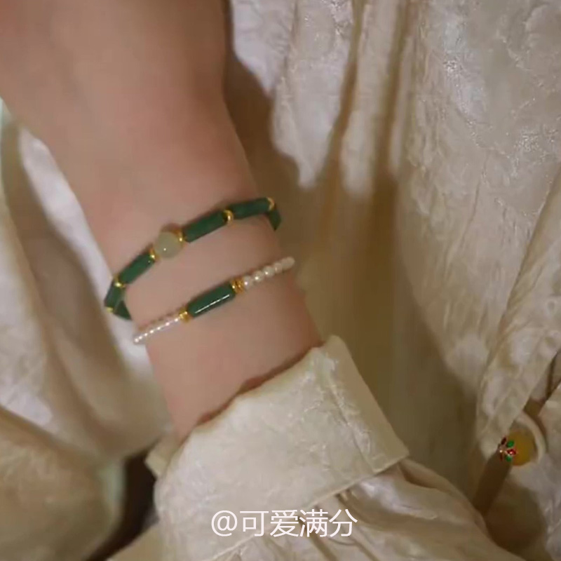 新中式仿和田玉珍珠竹节手链女款轻奢小众精致高级感国风复古手串