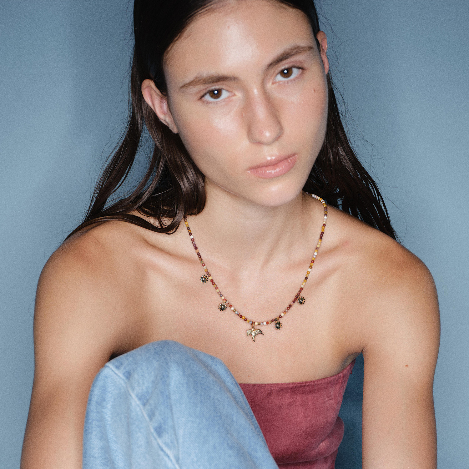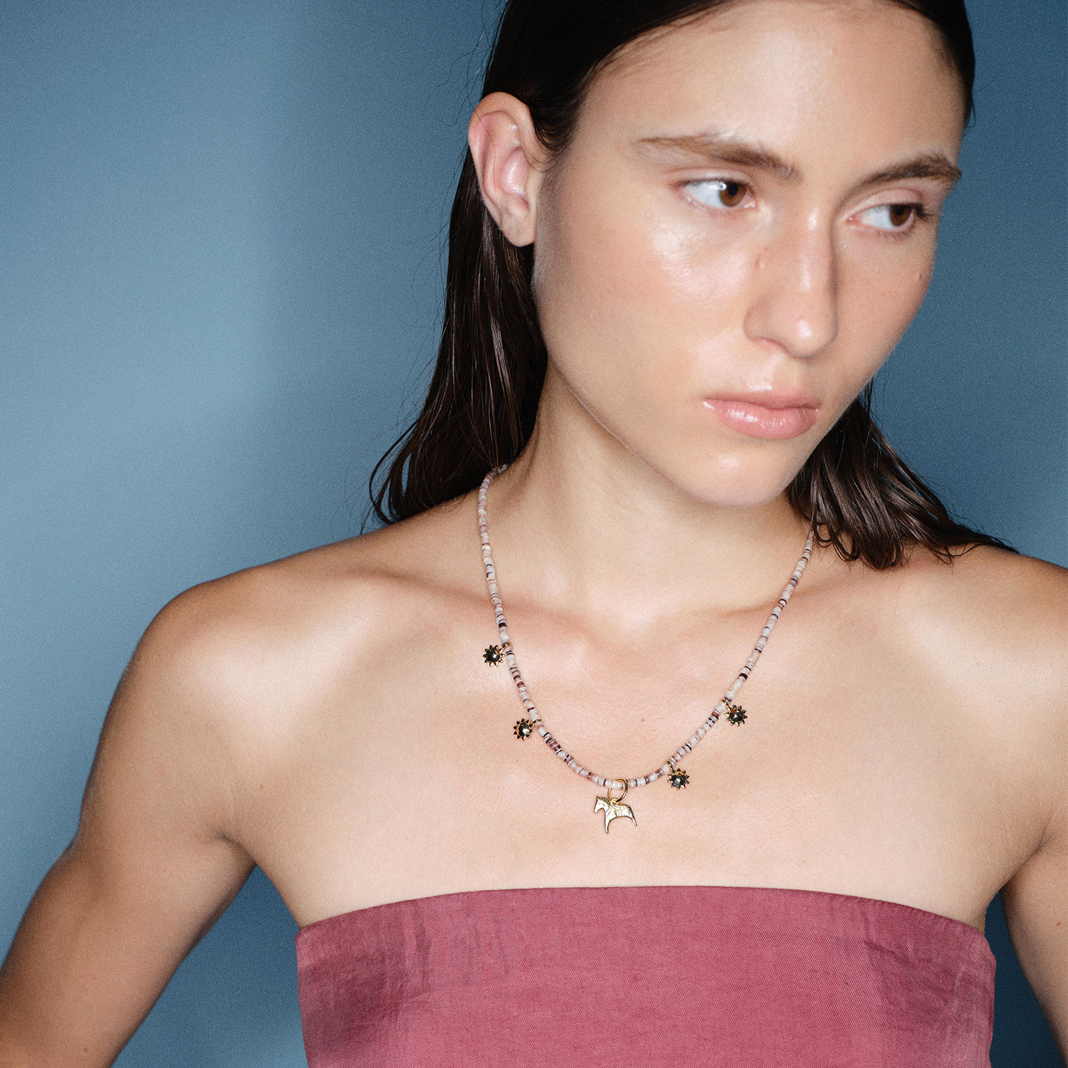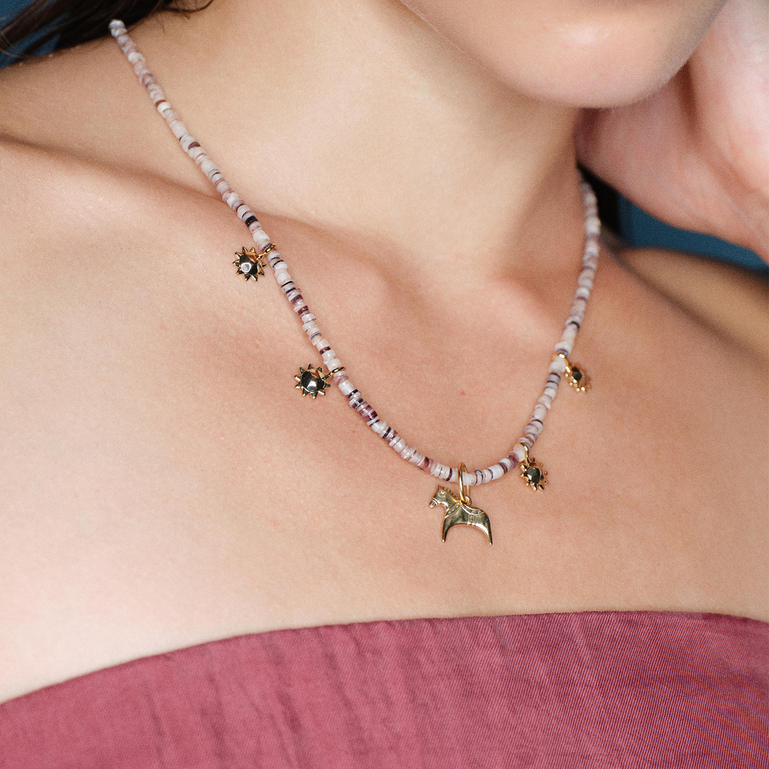 董生活推荐LAZY CIRCLES逐日小马项链女太阳石贝壳串珠秋冬毛衣链
