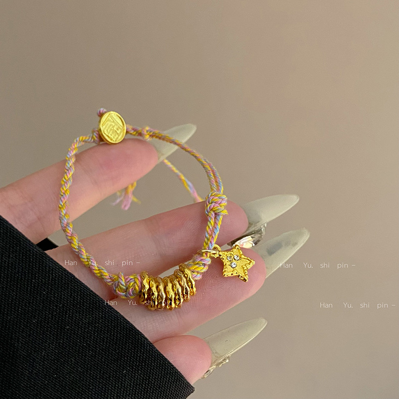 金色小福星情侣手链新款时尚手工编织简约星星吊坠手绳送闺蜜饰品
