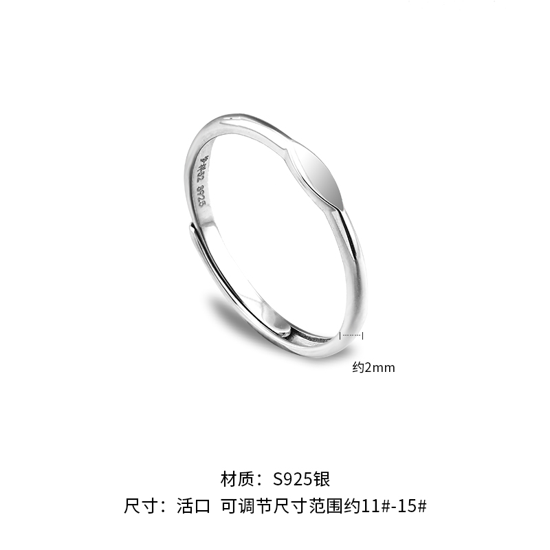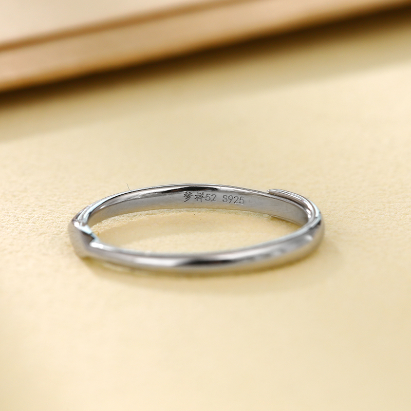 梦祥银平安无事戒指女S925银简约菱面素圈戒指送女友送闺蜜礼物