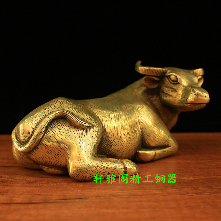 纯铜卧牛摆件一对十二生肖牛家居装饰品礼品铜水牛办公室桌面摆设