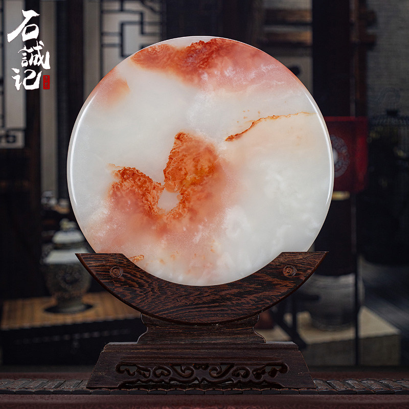 石诚记红花冰玉石平安扣客厅摆件开业中式酒柜乔迁送礼家居装饰品