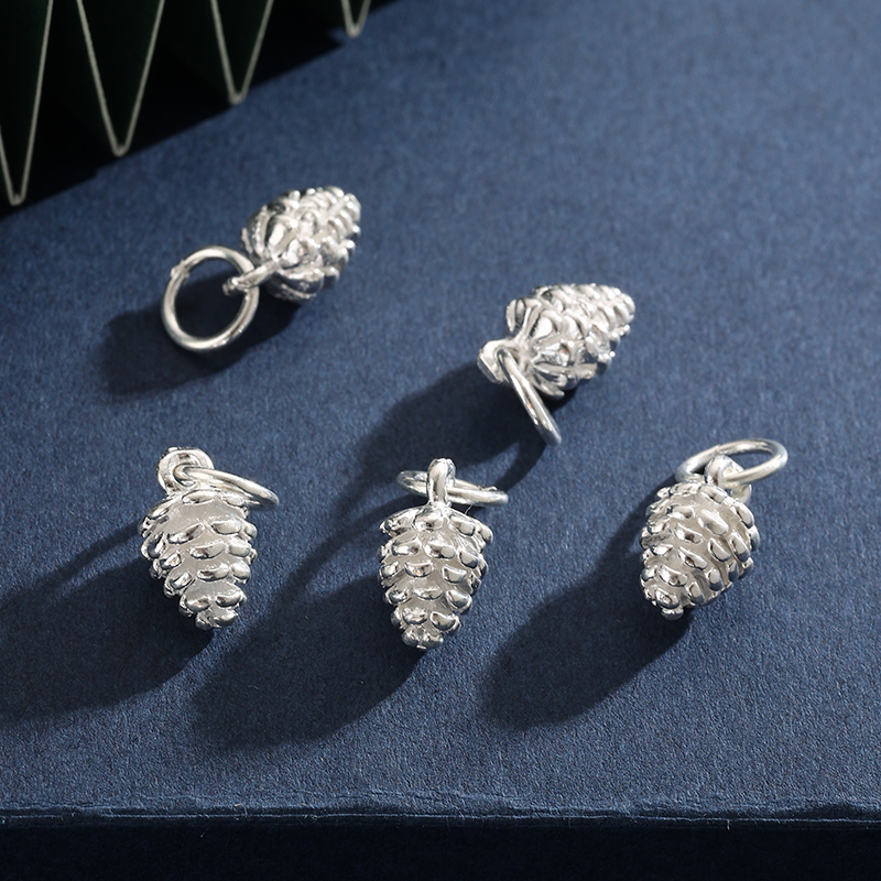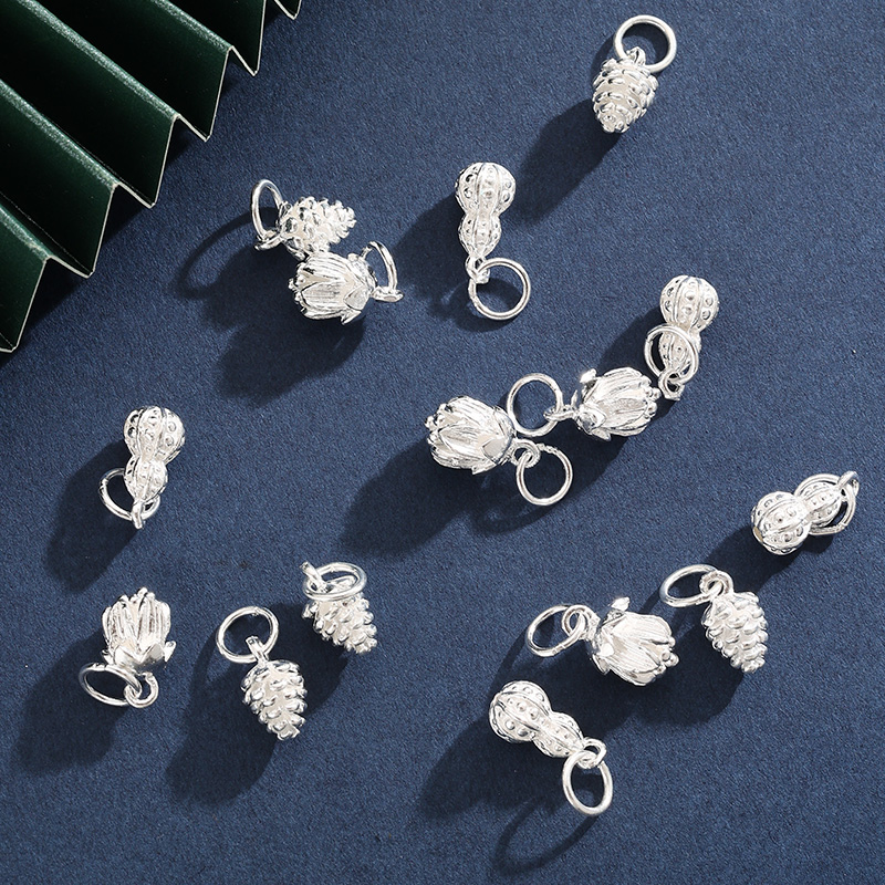 999纯银挂坠配件莲花松果葫芦实心项链吊坠DIY串珠材料手链配饰品