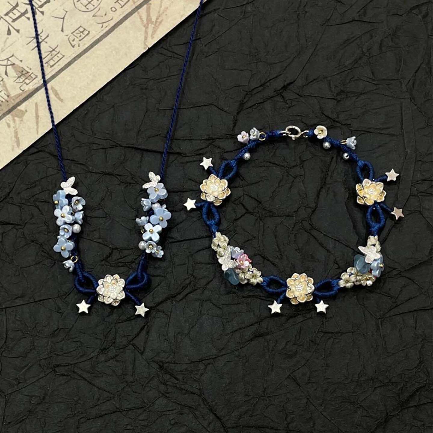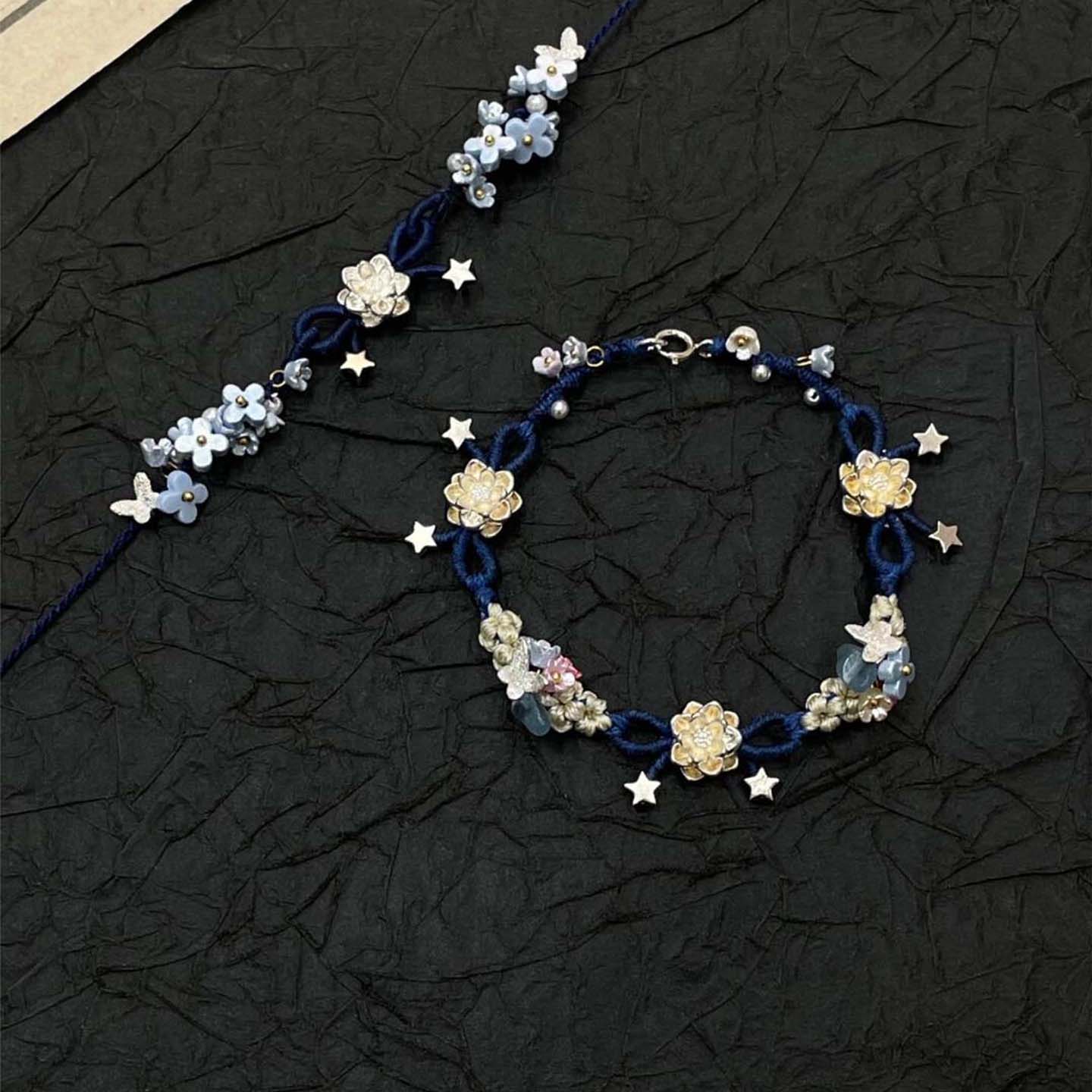 克莱因蓝莲花星星手链女款2025新款轻奢小众精致编织手绳叠戴手饰