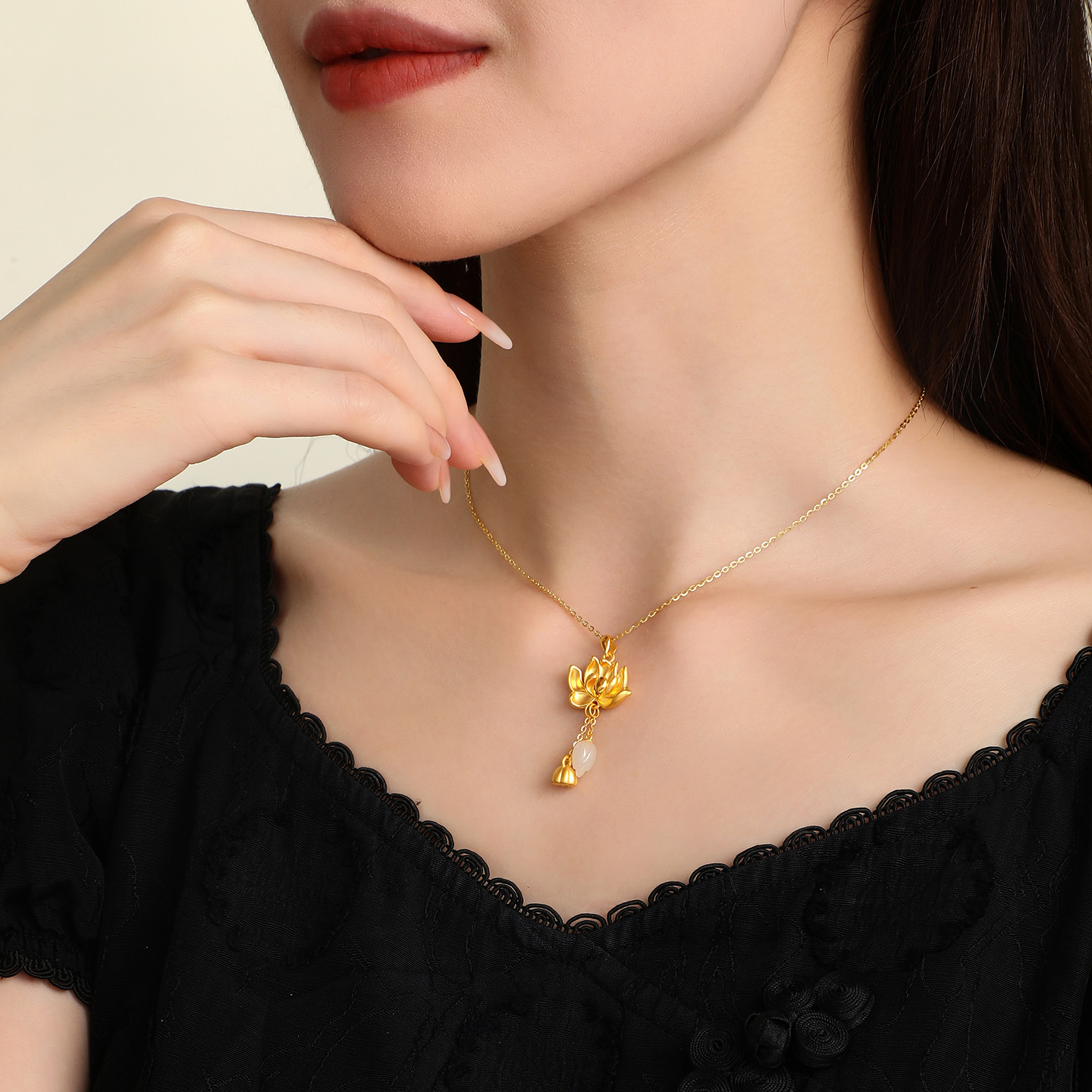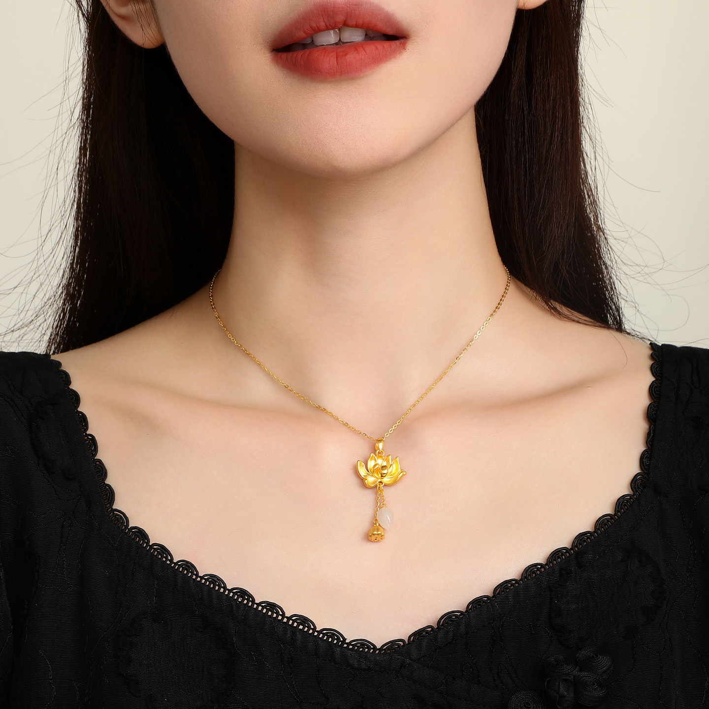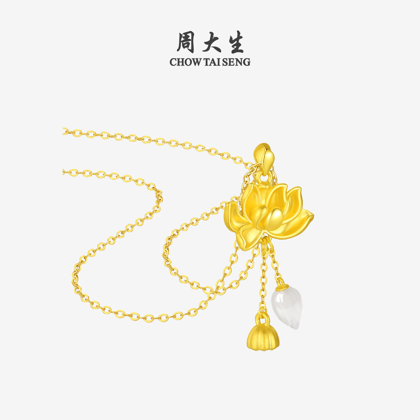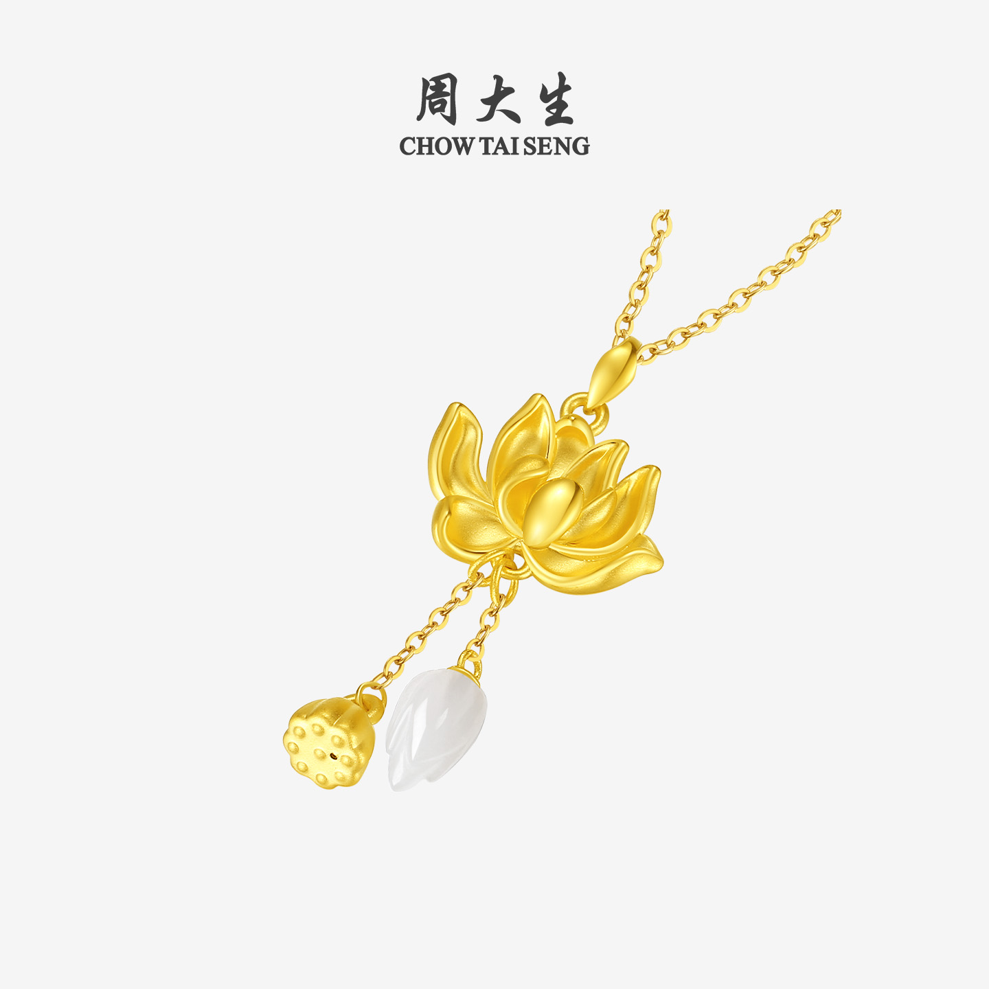 周大生黄金项链吊坠女款和田玉莲花莲蓬挂坠圣诞礼物送女友送妈妈