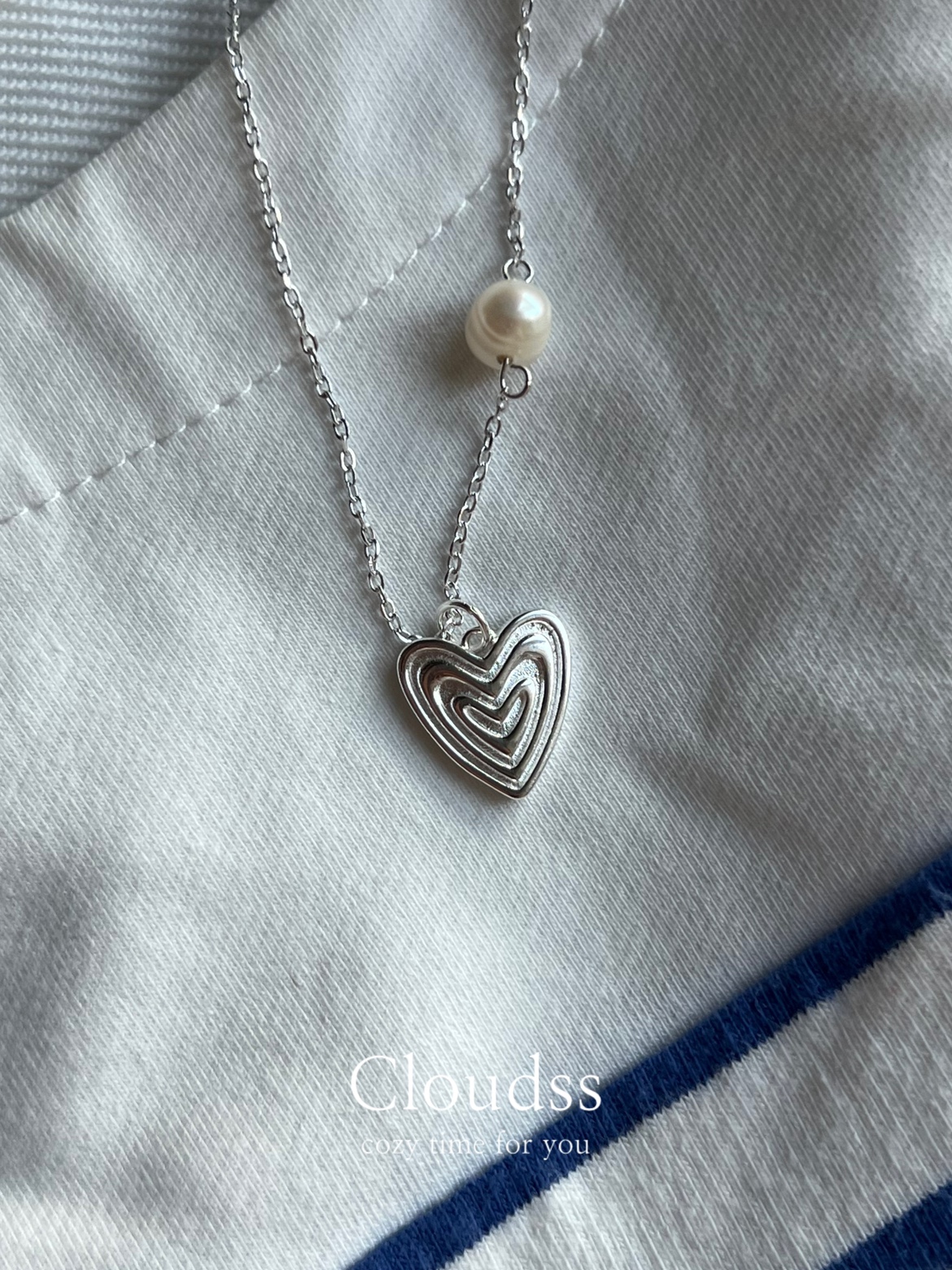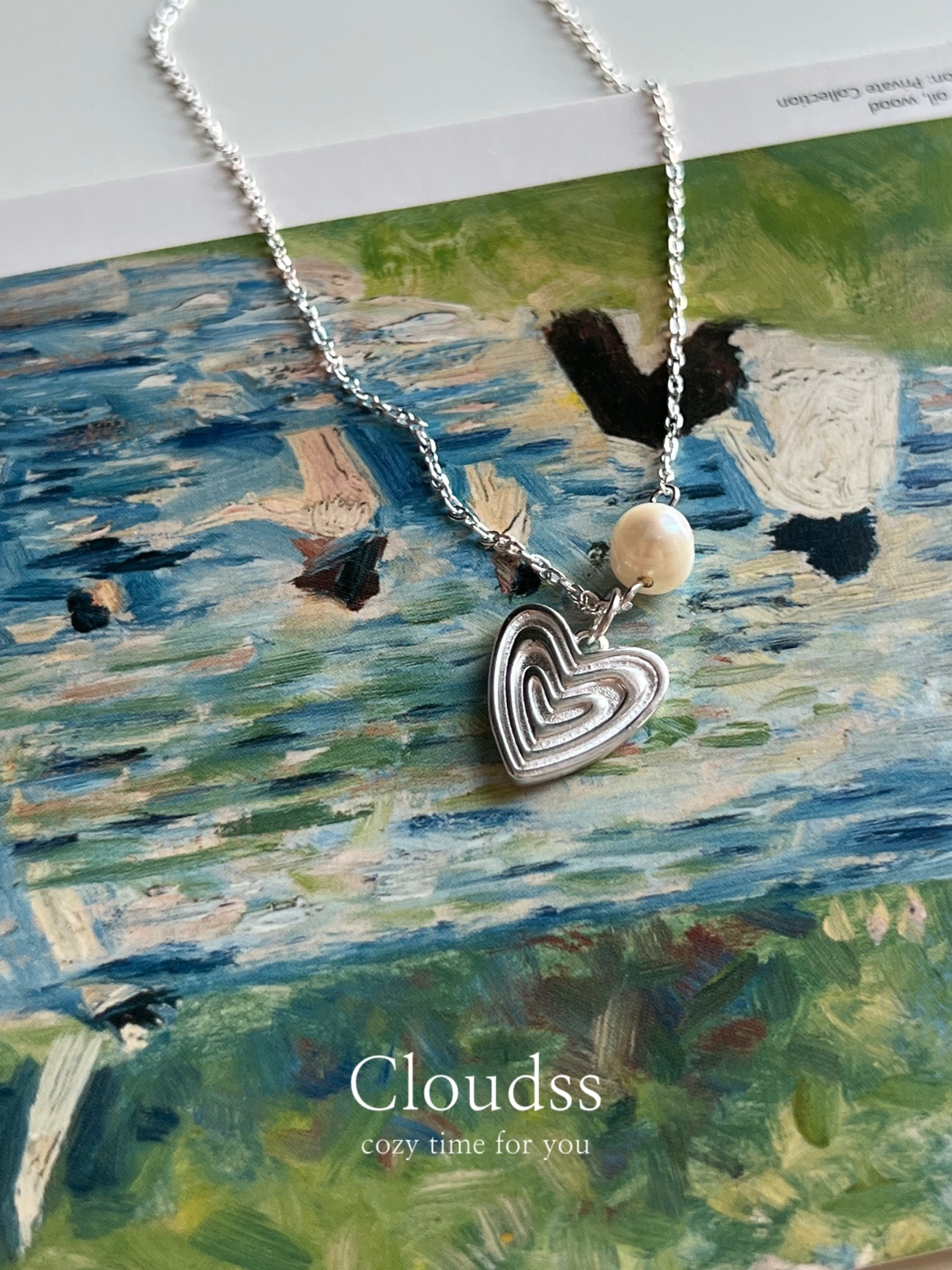 Cloudss「藏在心里」ins风爱心吊坠珍珠点缀s925纯银项链