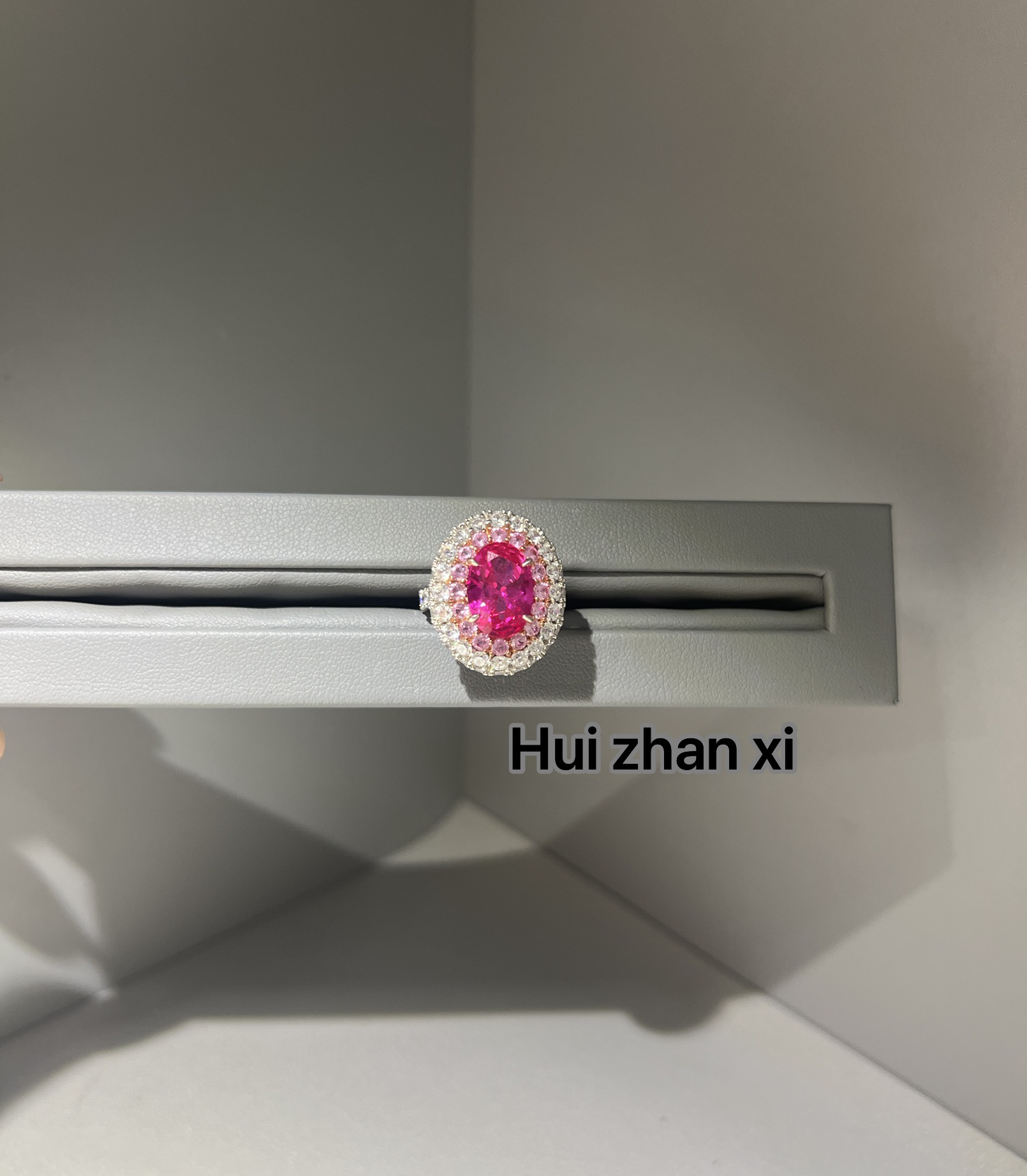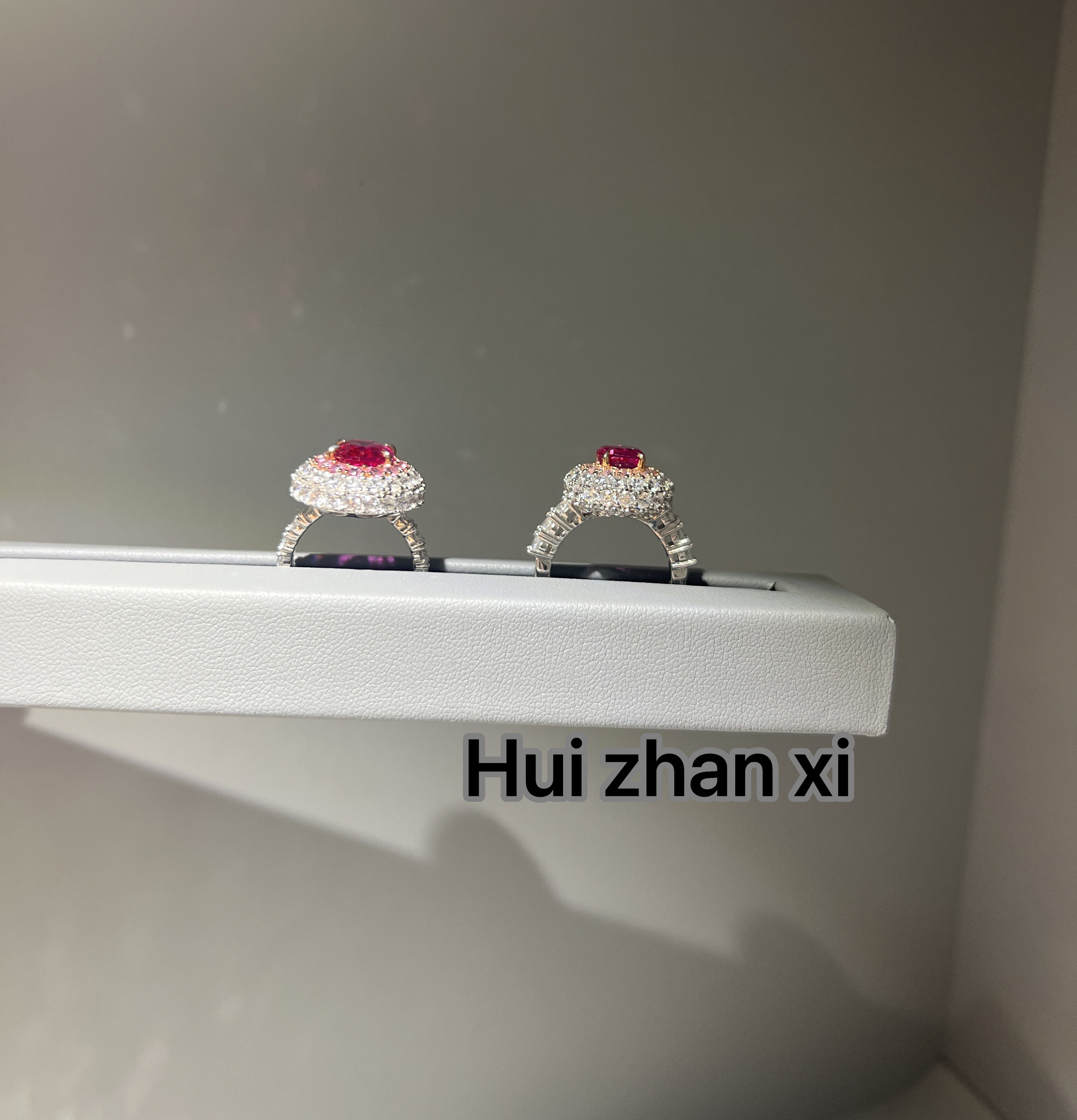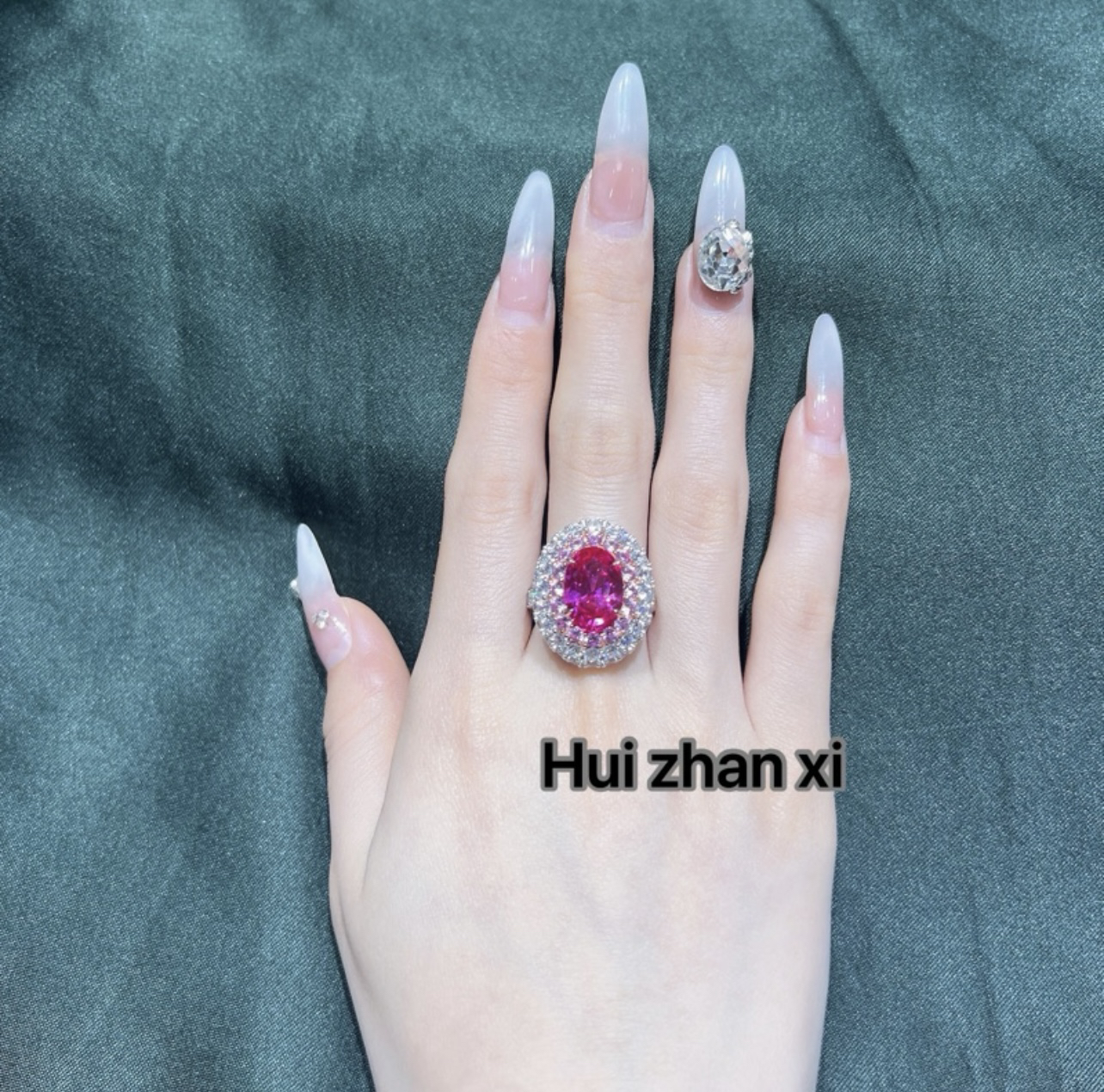 Hui zhan xi培育粉蓝宝满钻豪华鸽子蛋戒指大版和小版