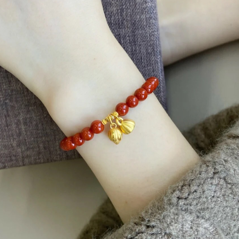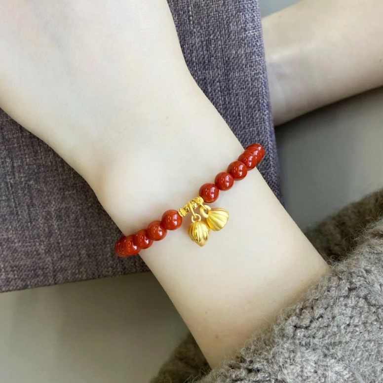3D硬金黄金两世欢手链女999足金南红路路通金珠手串母亲节送妈妈